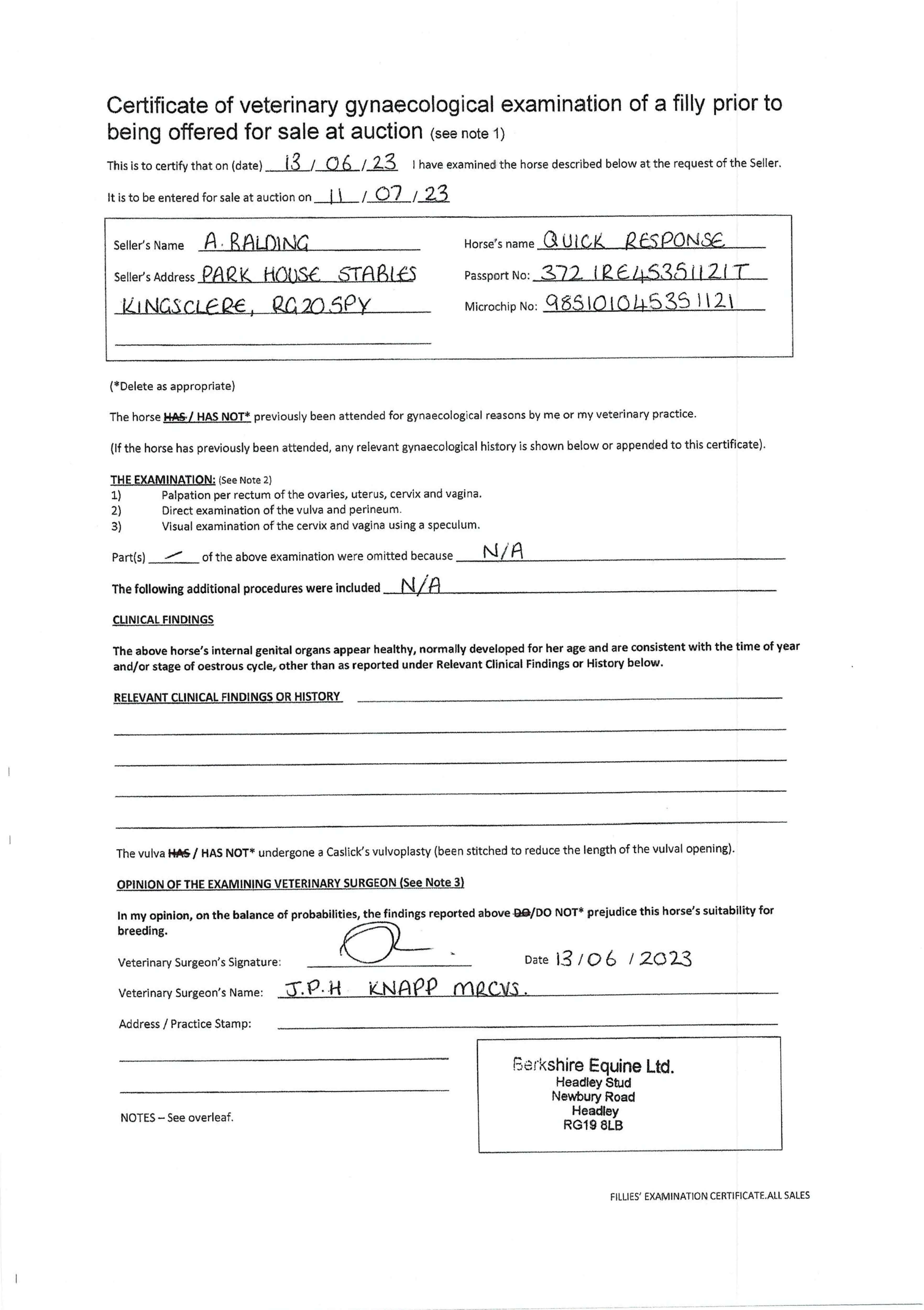 Consignor: Park House Stables (A. Balding)