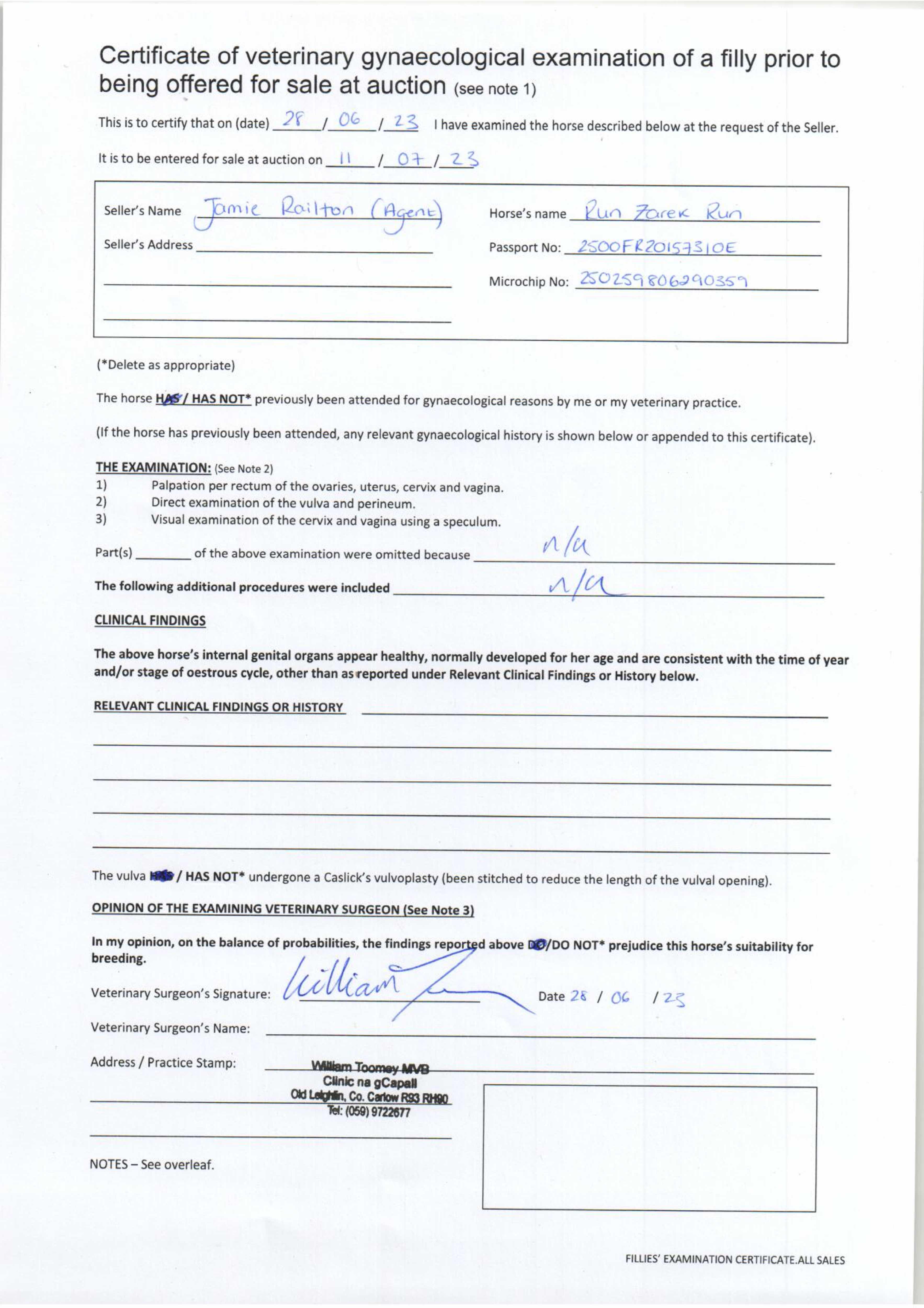 Consignor: Jamie Railton (Agent)