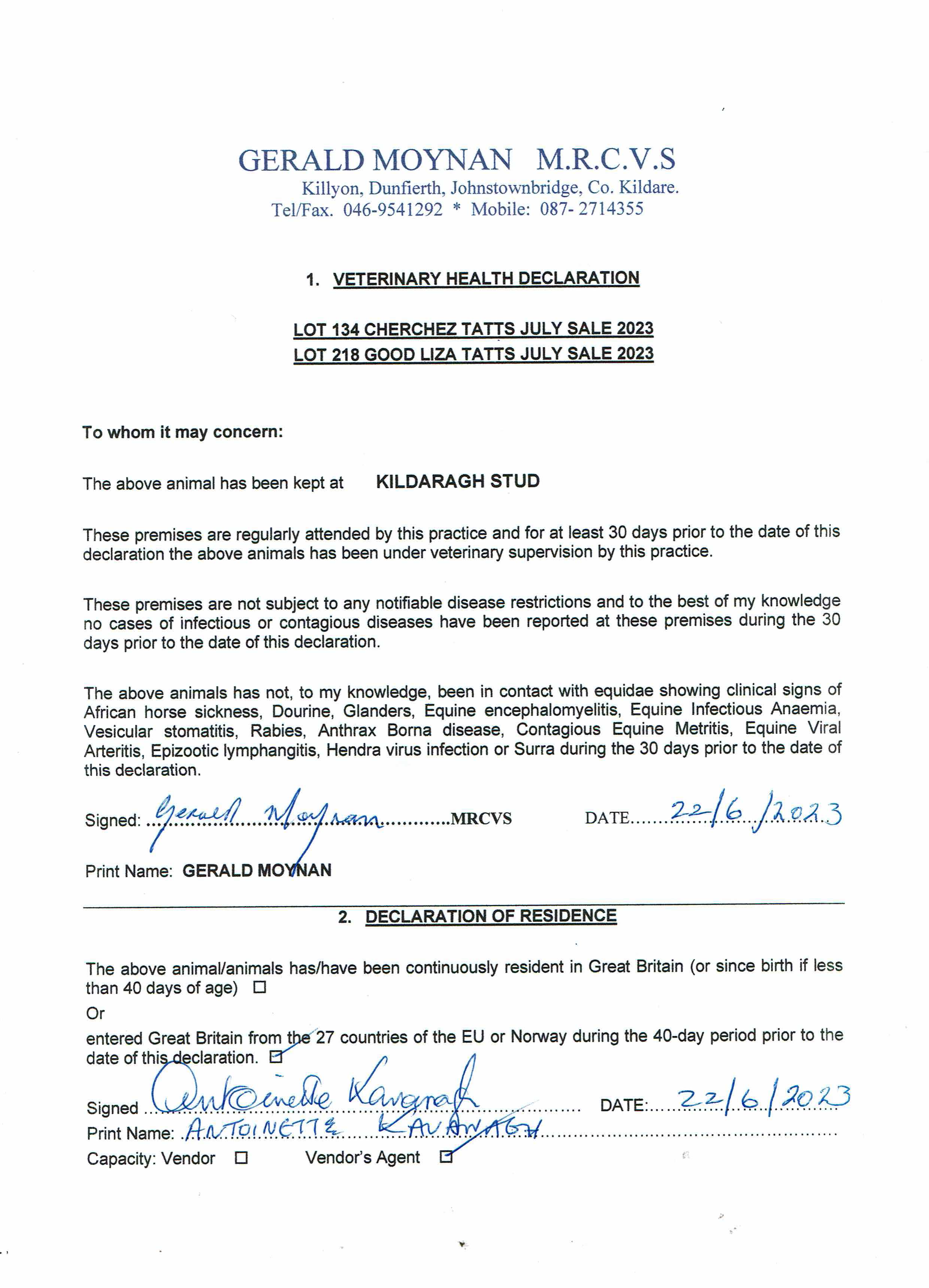 Contact: antoinette kavanagh ✆ +353876133901 ✉ office@kildaraghstud.com