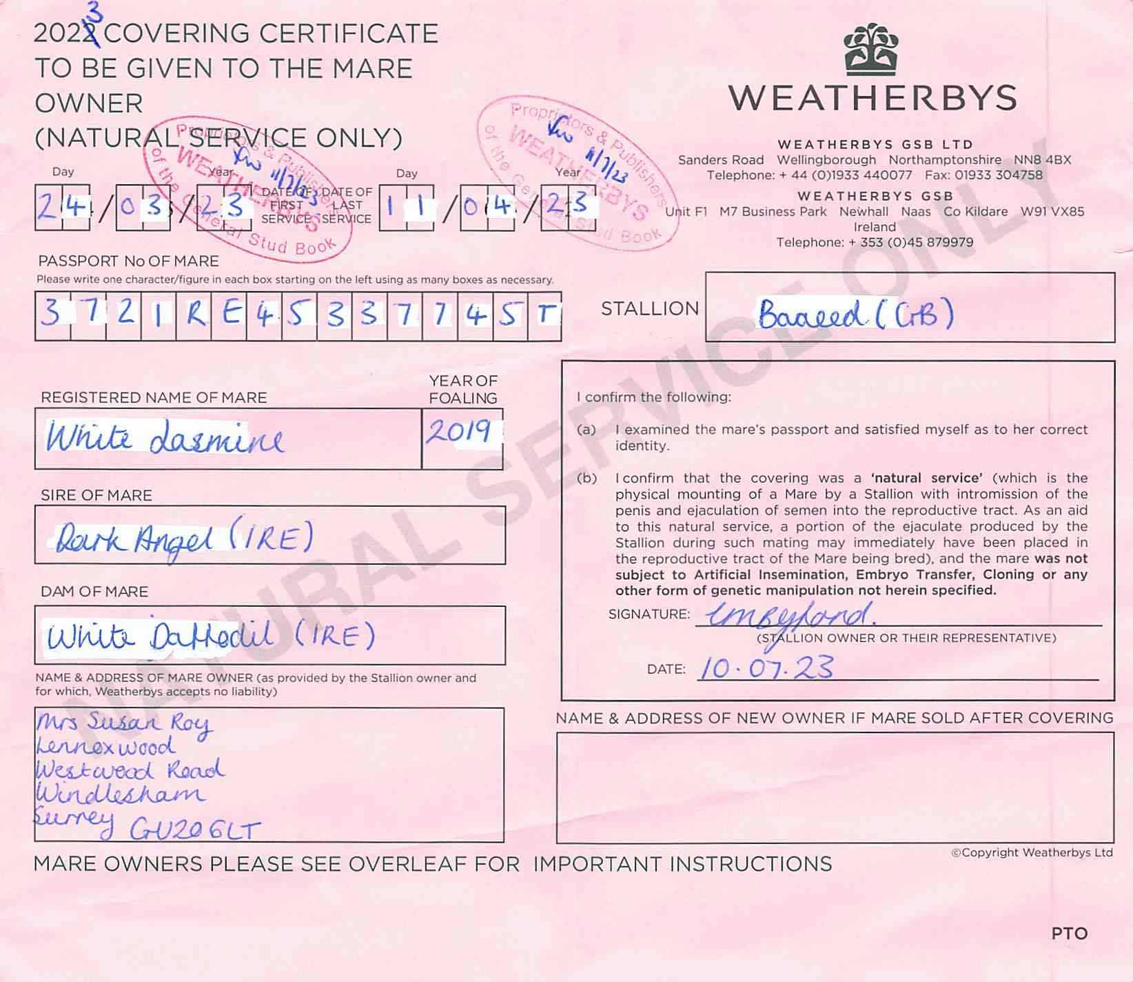 Consignor: Baroda Stud, Ireland