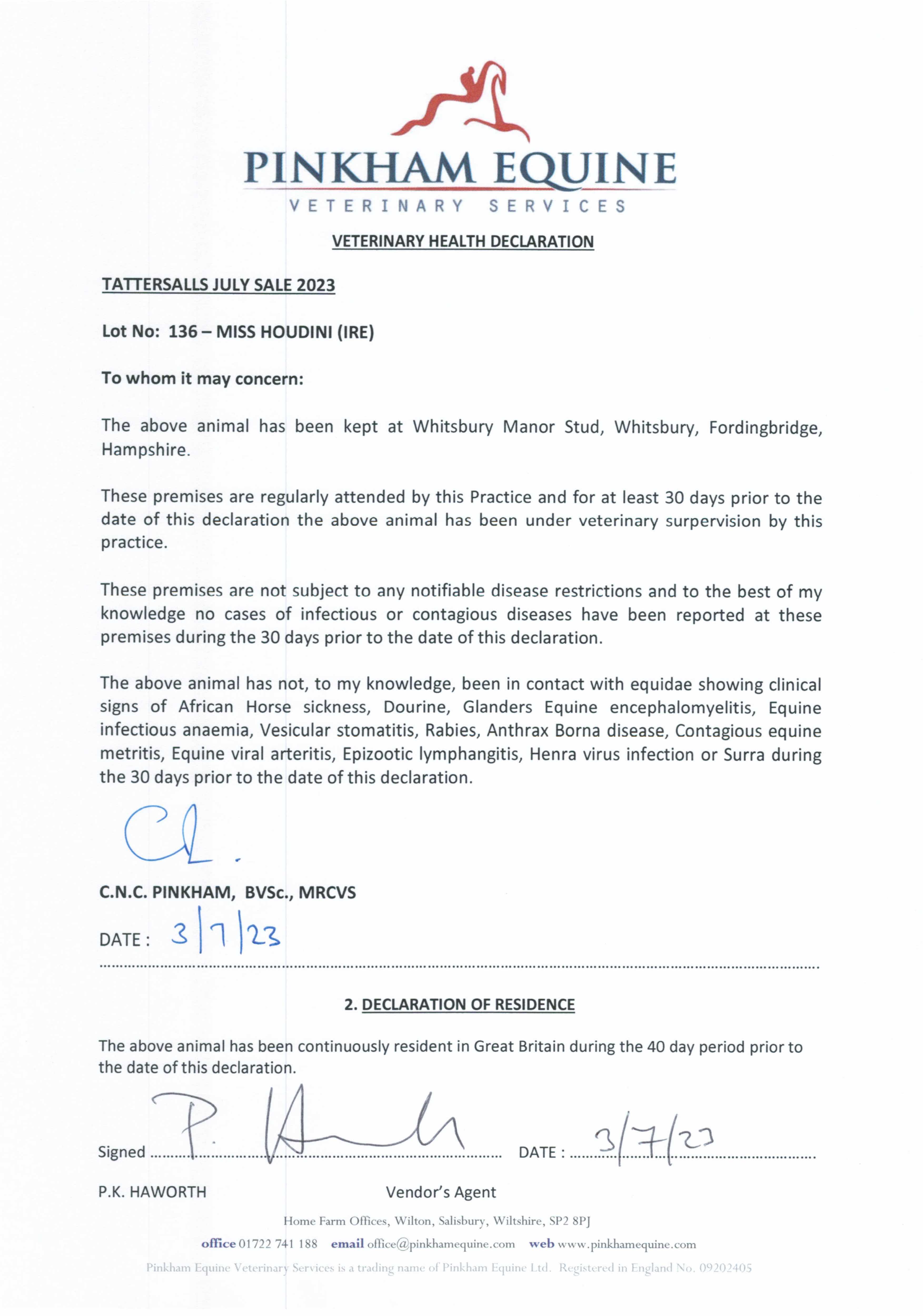 July Sale 2021 lot 368, Baroda Stud, Ireland=>Vendor 25,000 gns