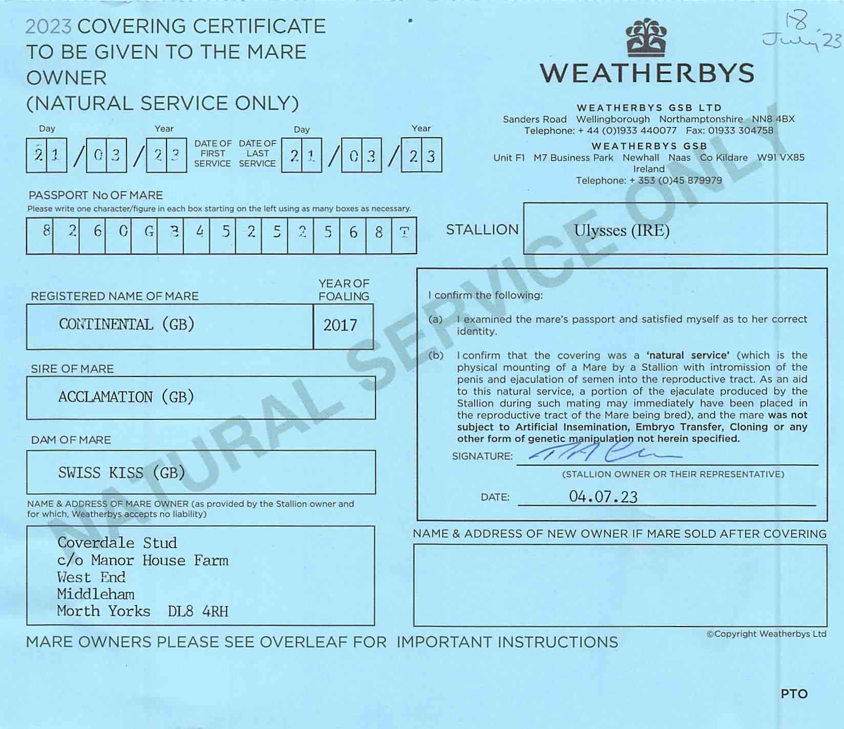 Online Sale - 23rd November 2023 lot 92 F. by Cable Bay (IRE) 2023, Collington Racing Ltd=>Lot Not Sold 900 gns