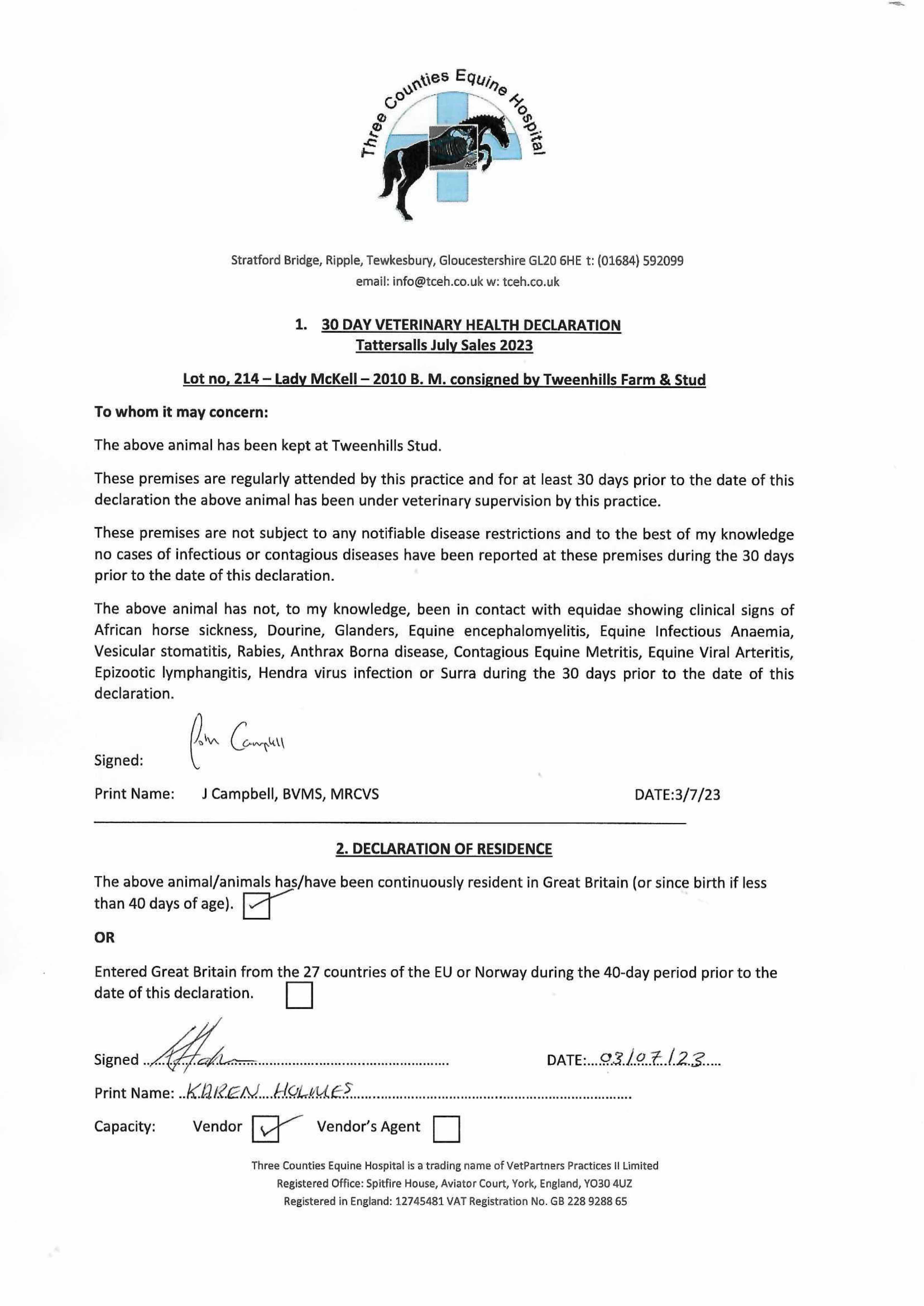 Consignor: Tweenhills Farm & Stud