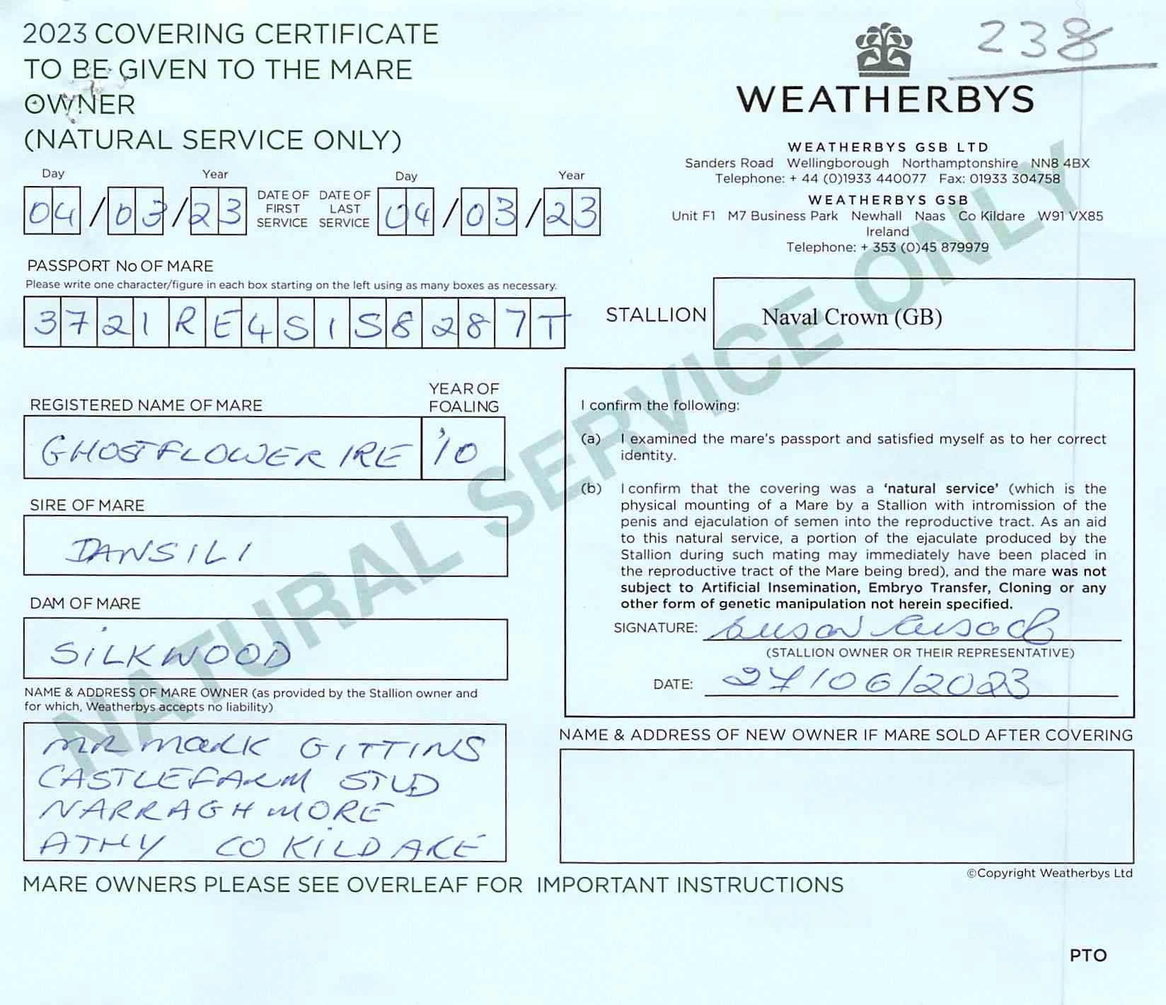 October Yearling Sale, Book 2 2021 lot 588 F. by Australia (GB) 2020, Castlefarm Stud, Ireland=>Vendor 30,000 gns