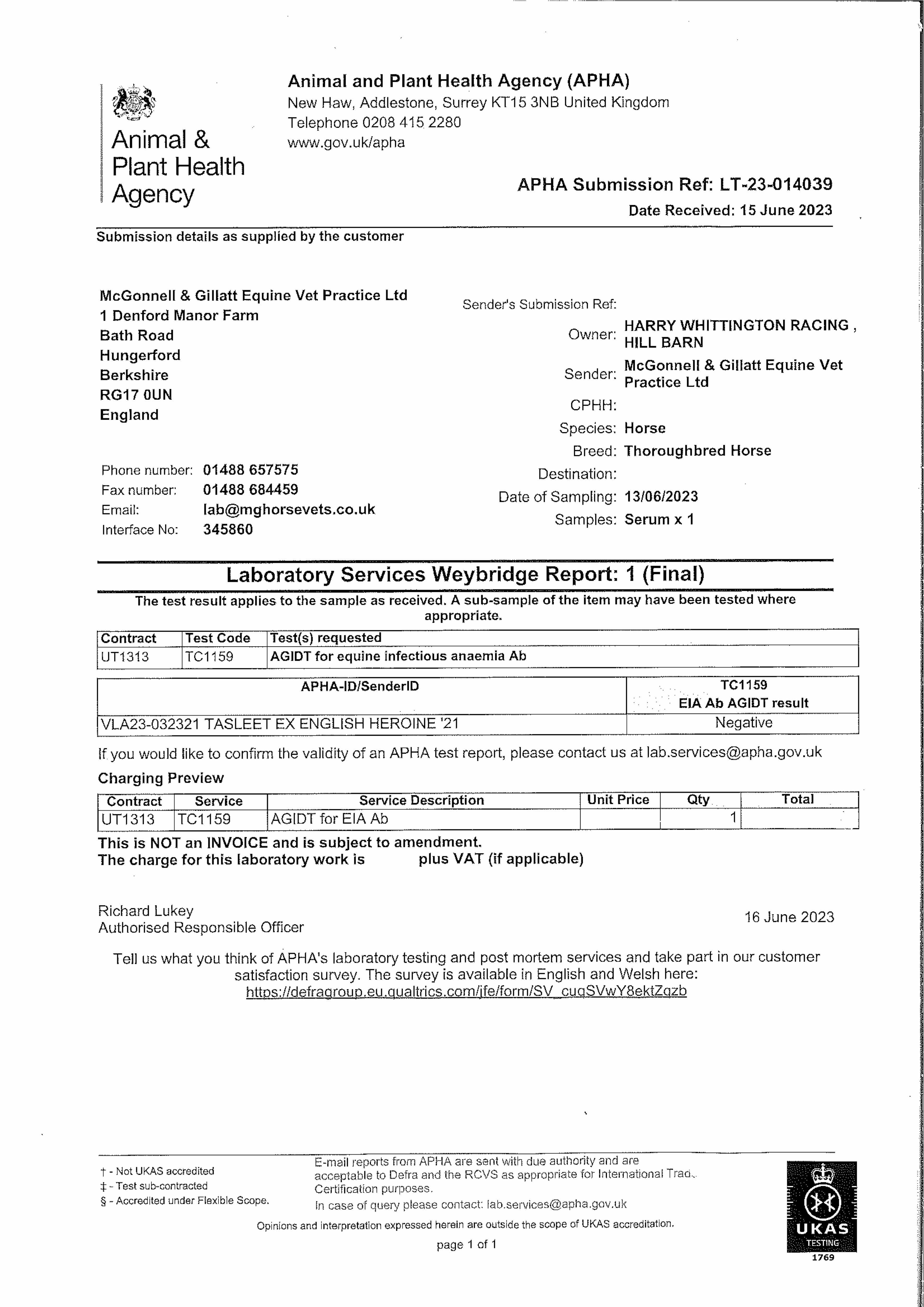 Consignor: Harry Whittington Racing