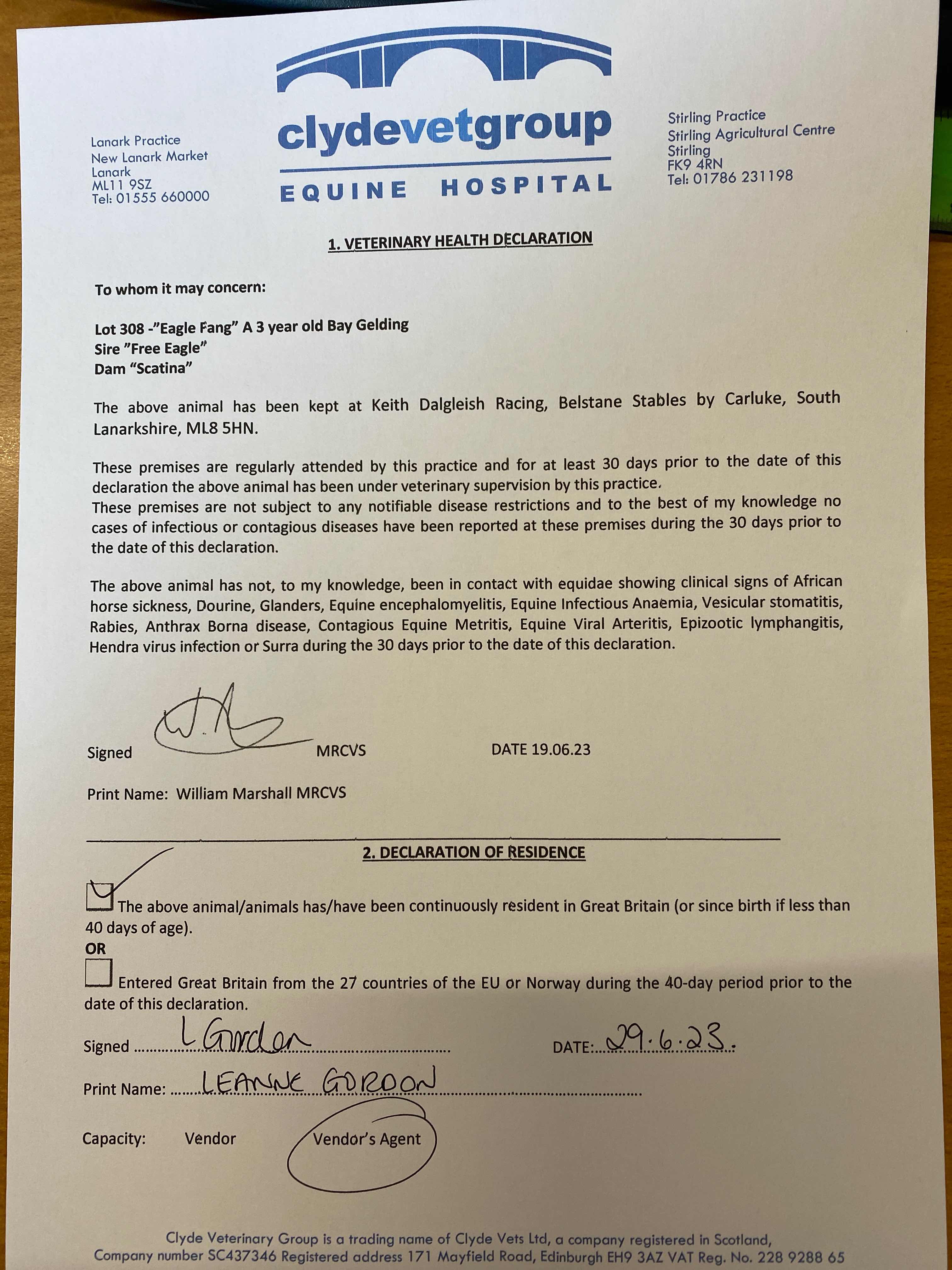 Consignor: Jamie Railton (Agent)