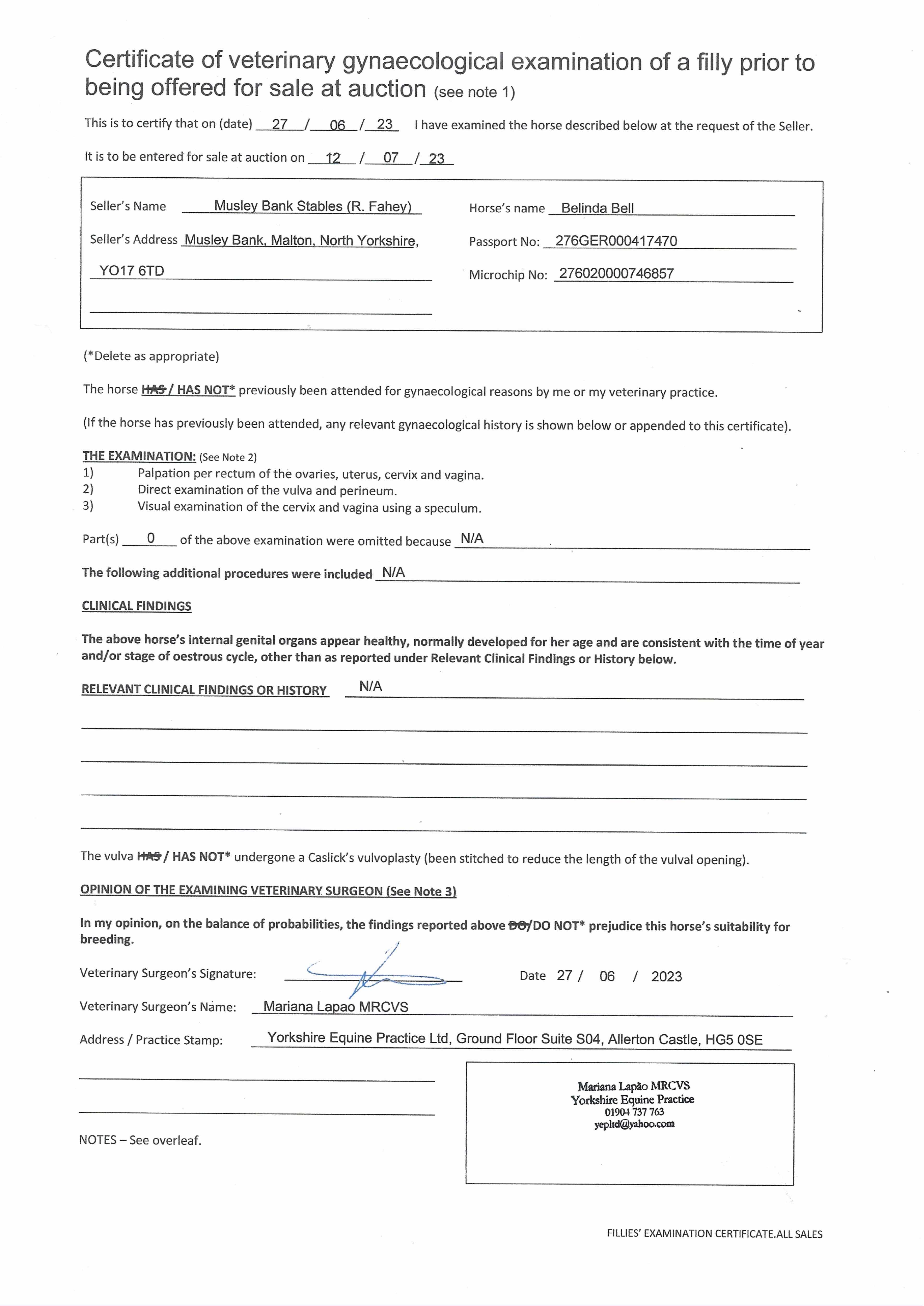 Consignor: Musley Bank Stables (R. Fahey)