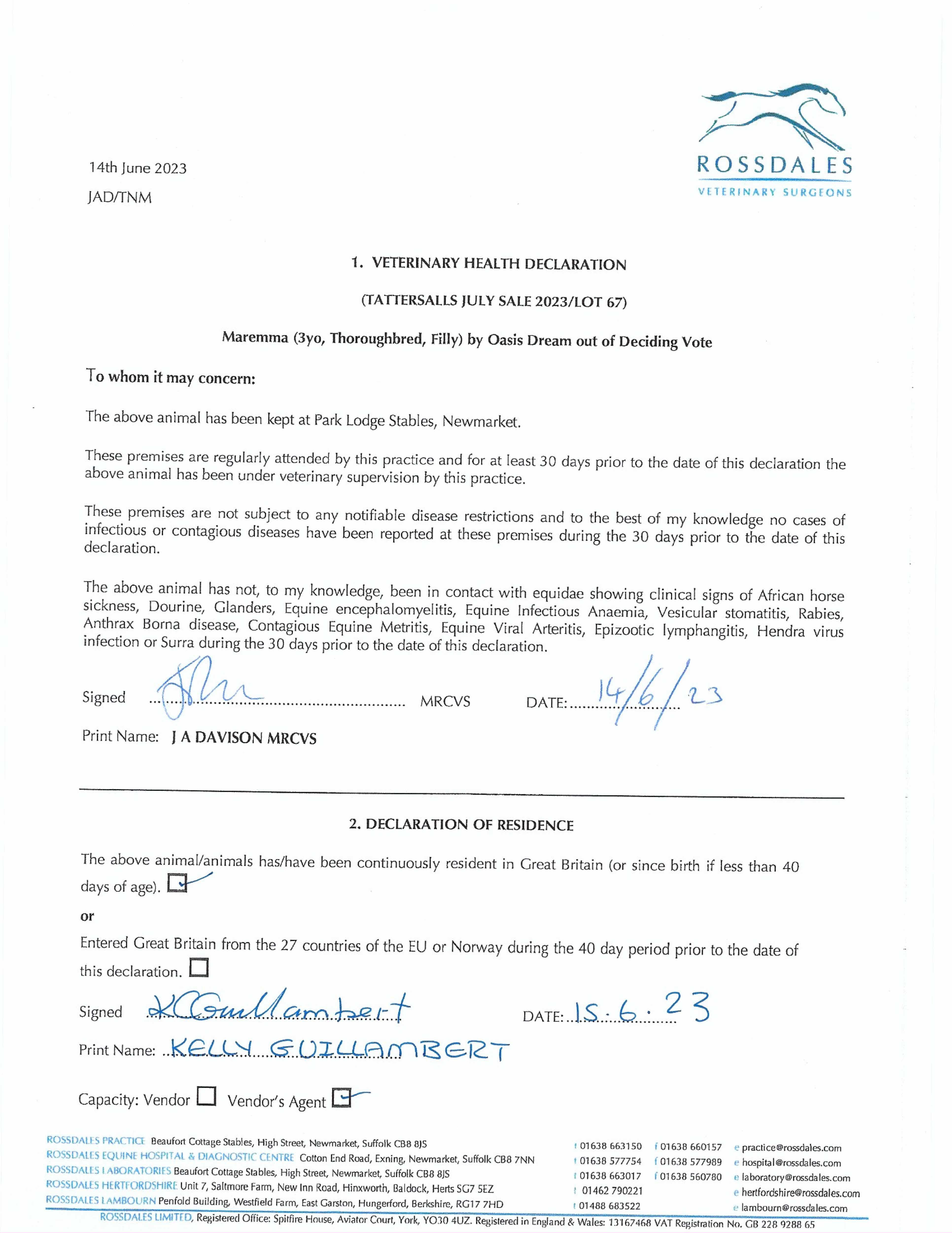 Somerville Yearling Sale 2024 lot 89 F. by Ardad (IRE) 2023, Bickmarsh Stud=>Vendor 20,000 gns