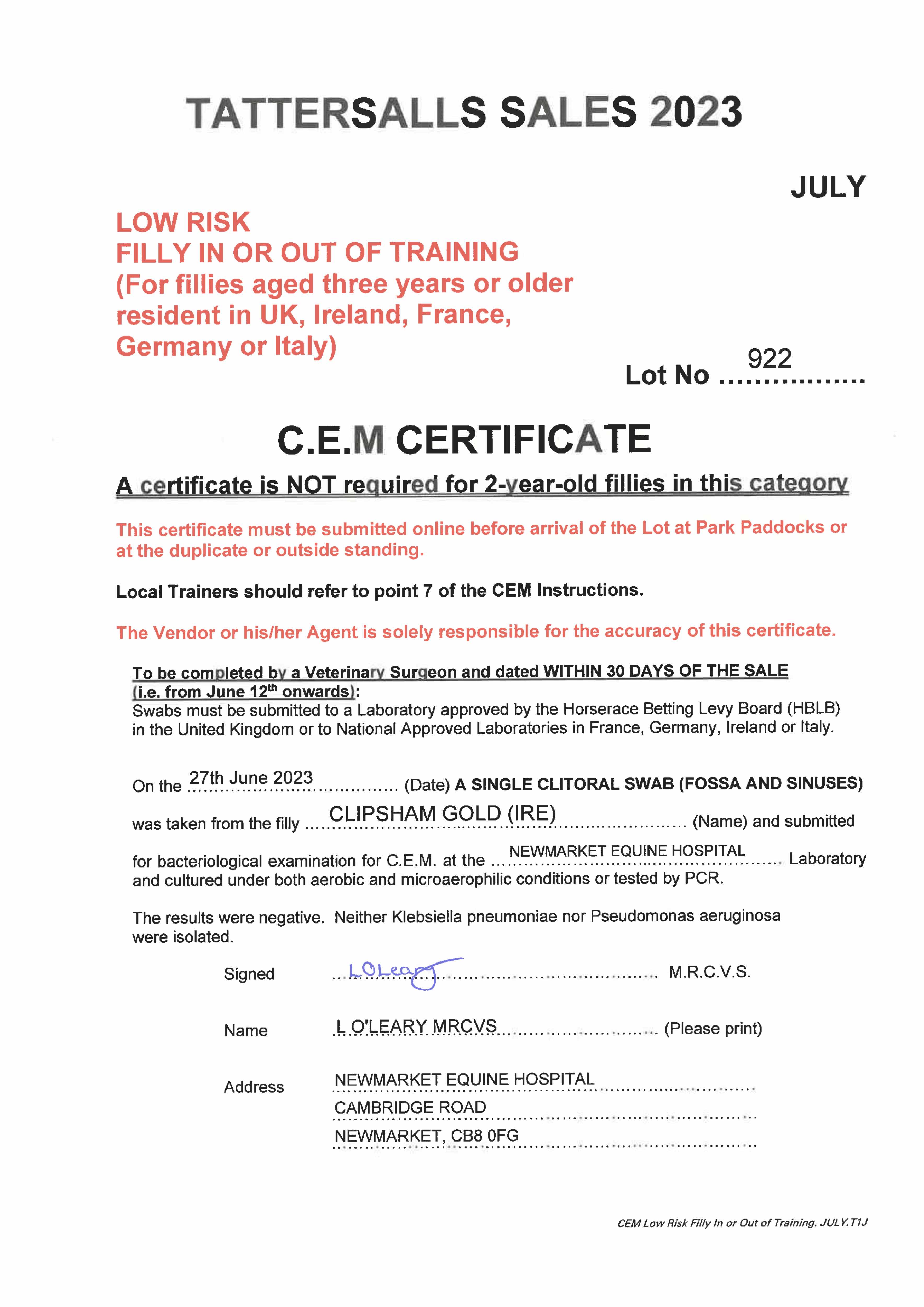 Consignor: Jamie Railton (Agent)