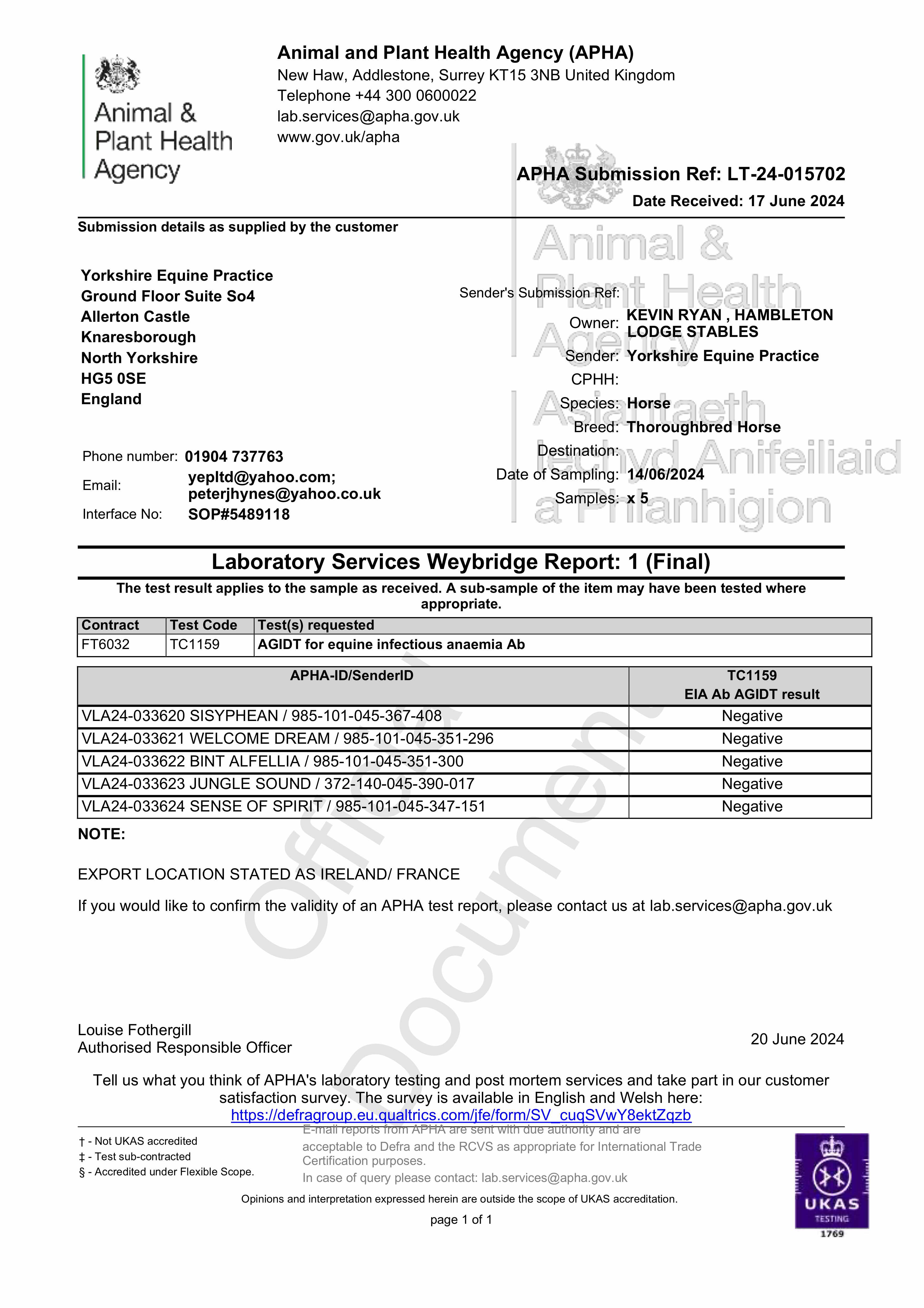 Consignor: Hambleton Lodge Stables (K. Ryan)