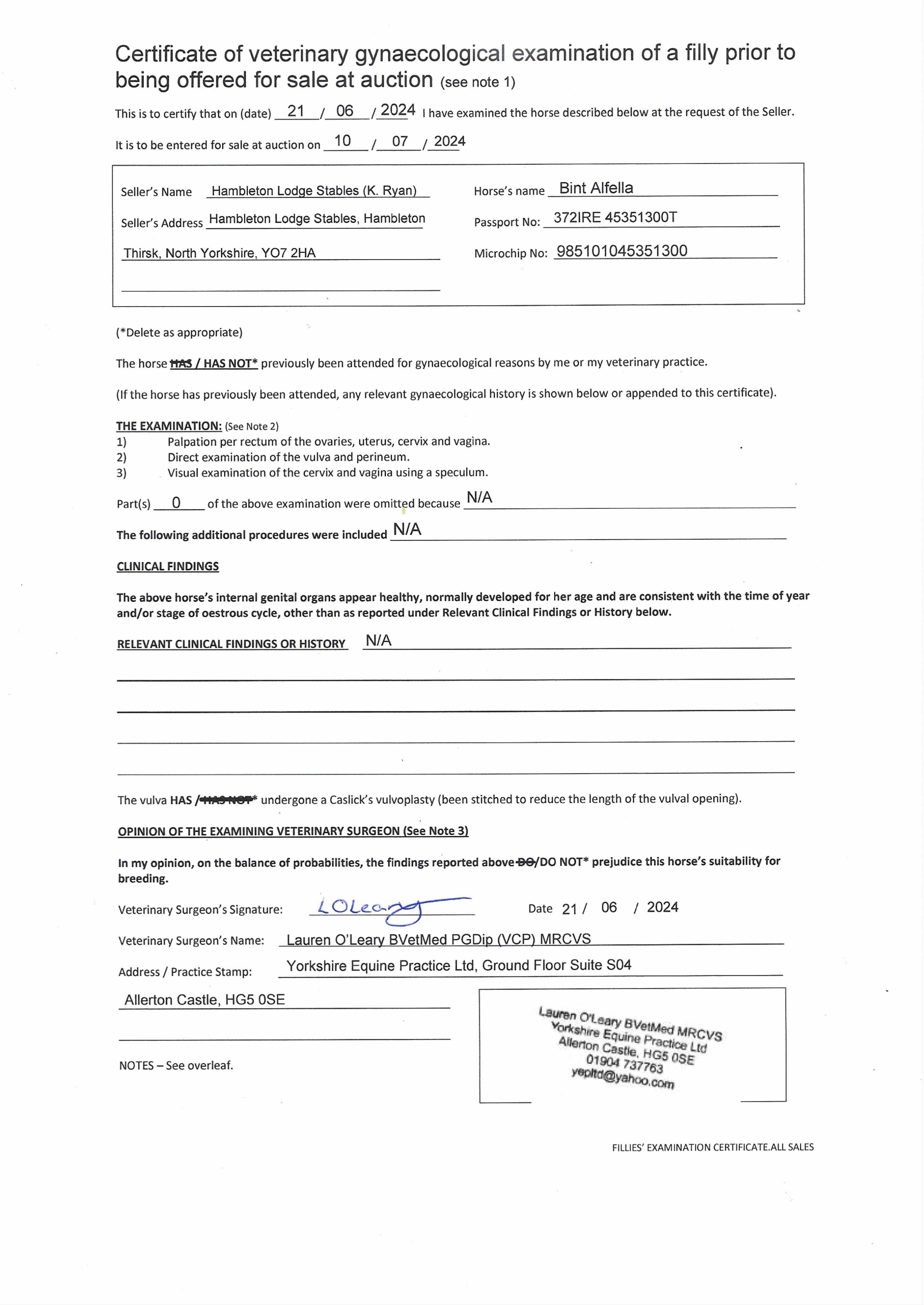 Consignor: Hambleton Lodge Stables (K. Ryan)