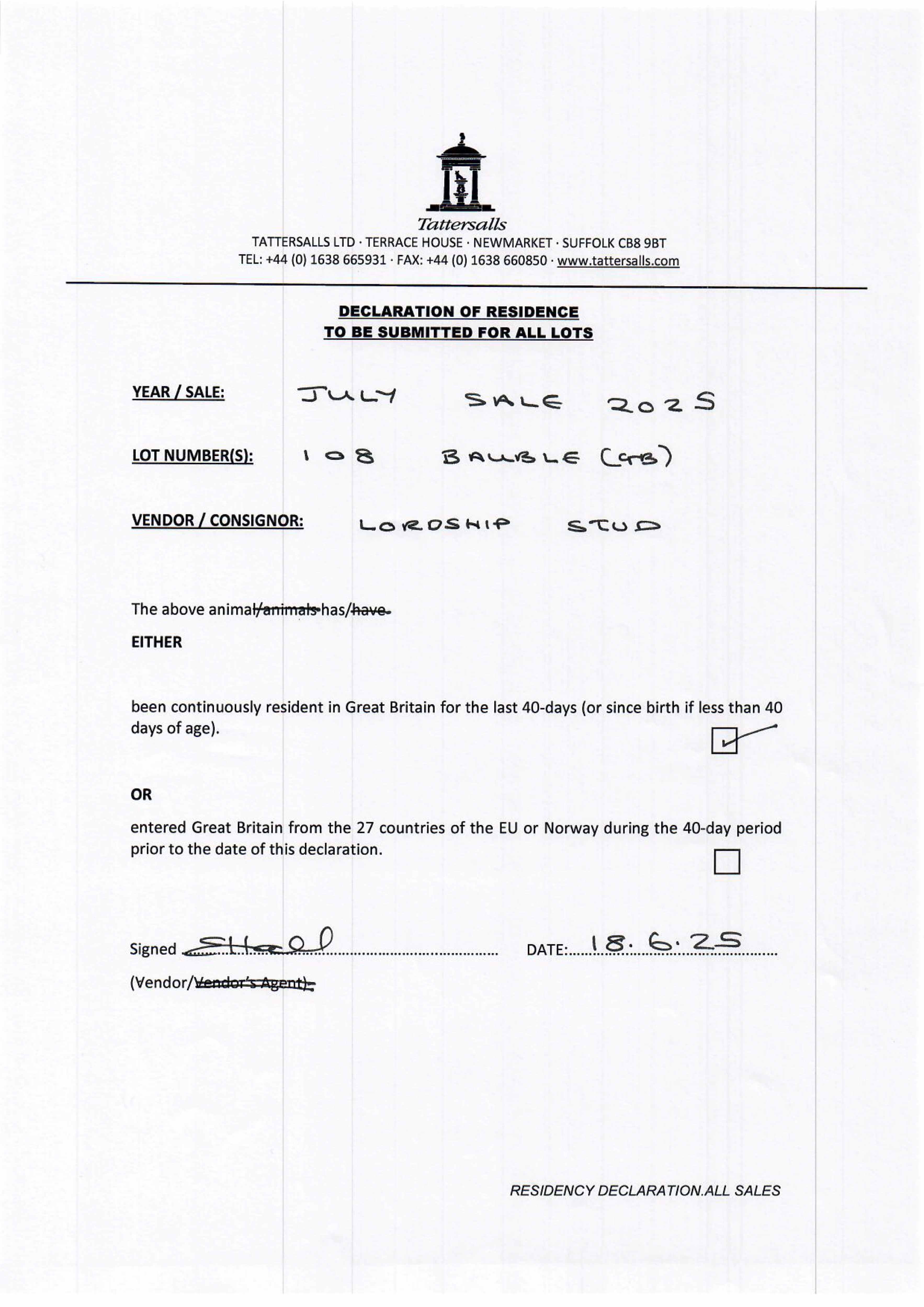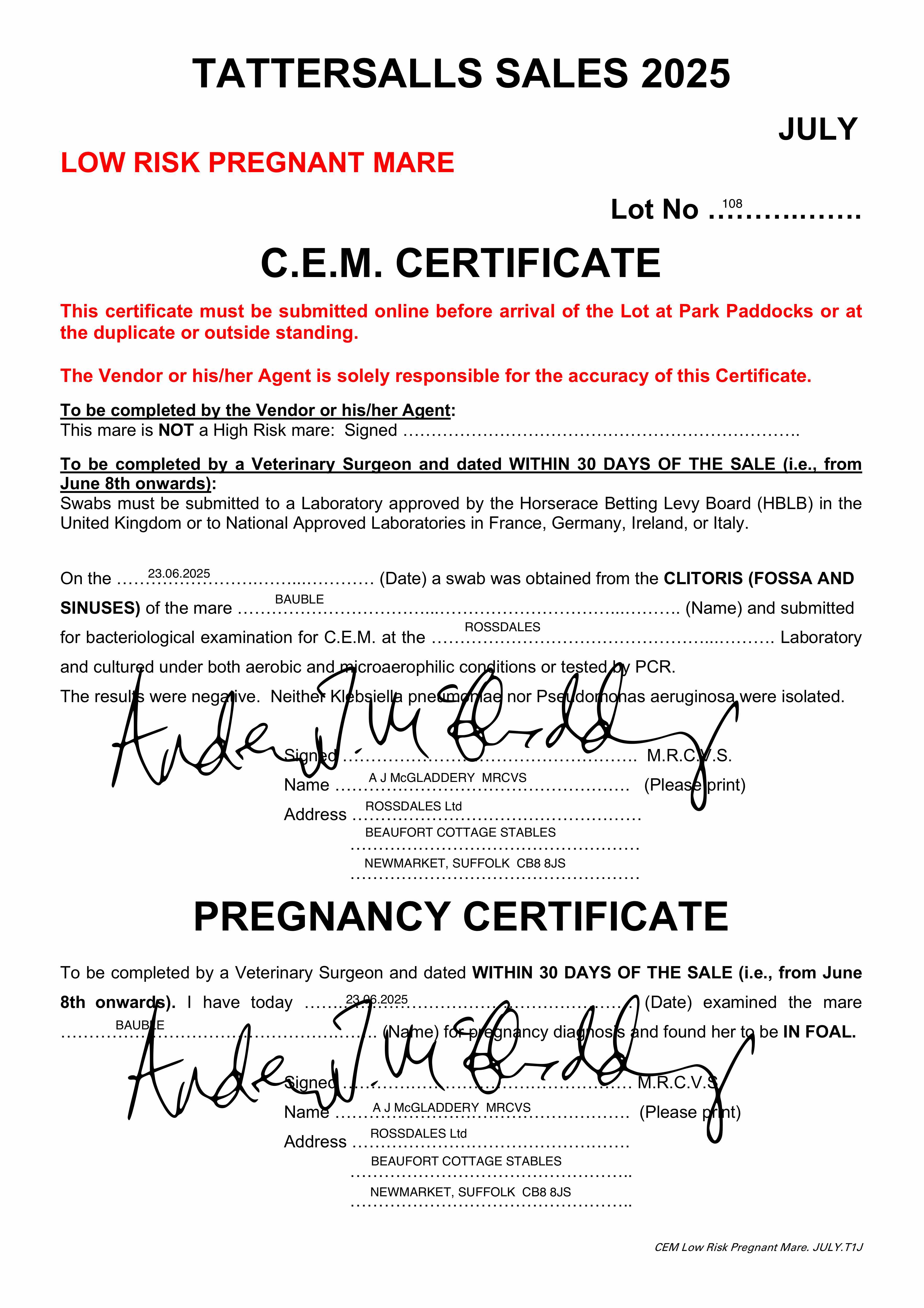 October Yearling Sale, Book 2 2025 lot 1225 F. by Wootton Bassett (GB) 2024, New England Stud=>Federico Barberini 110,000 gns