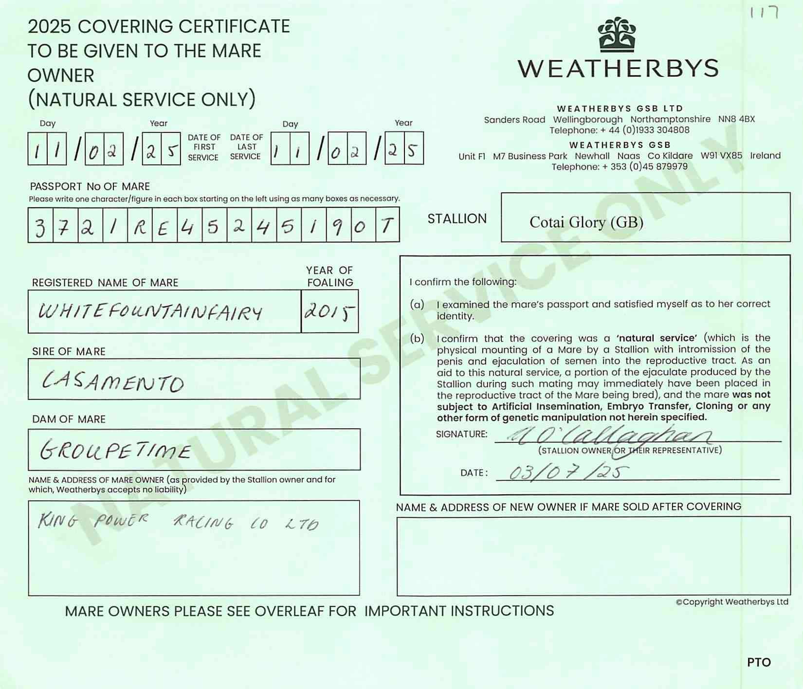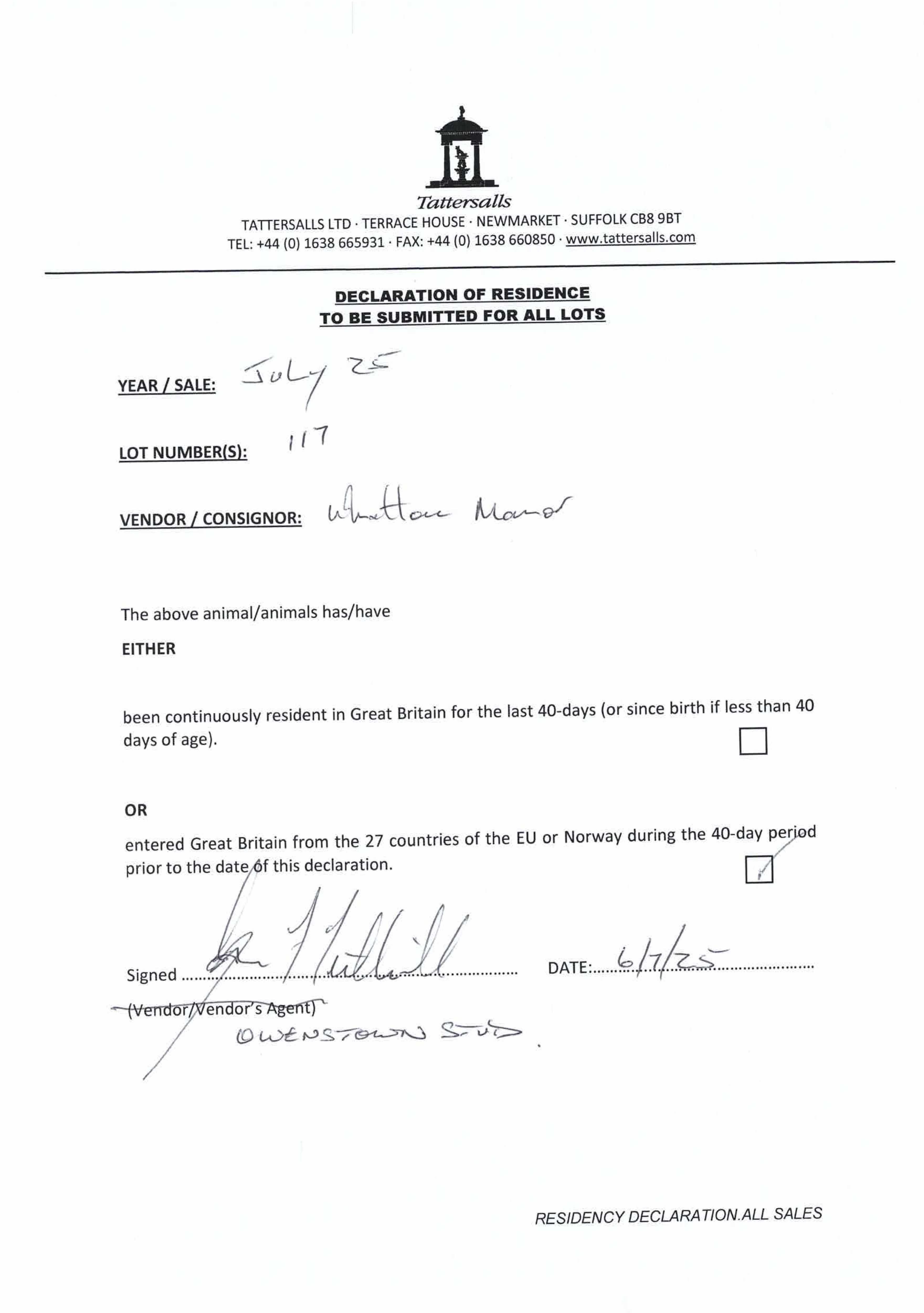 Consignor: Whatton Manor Stud