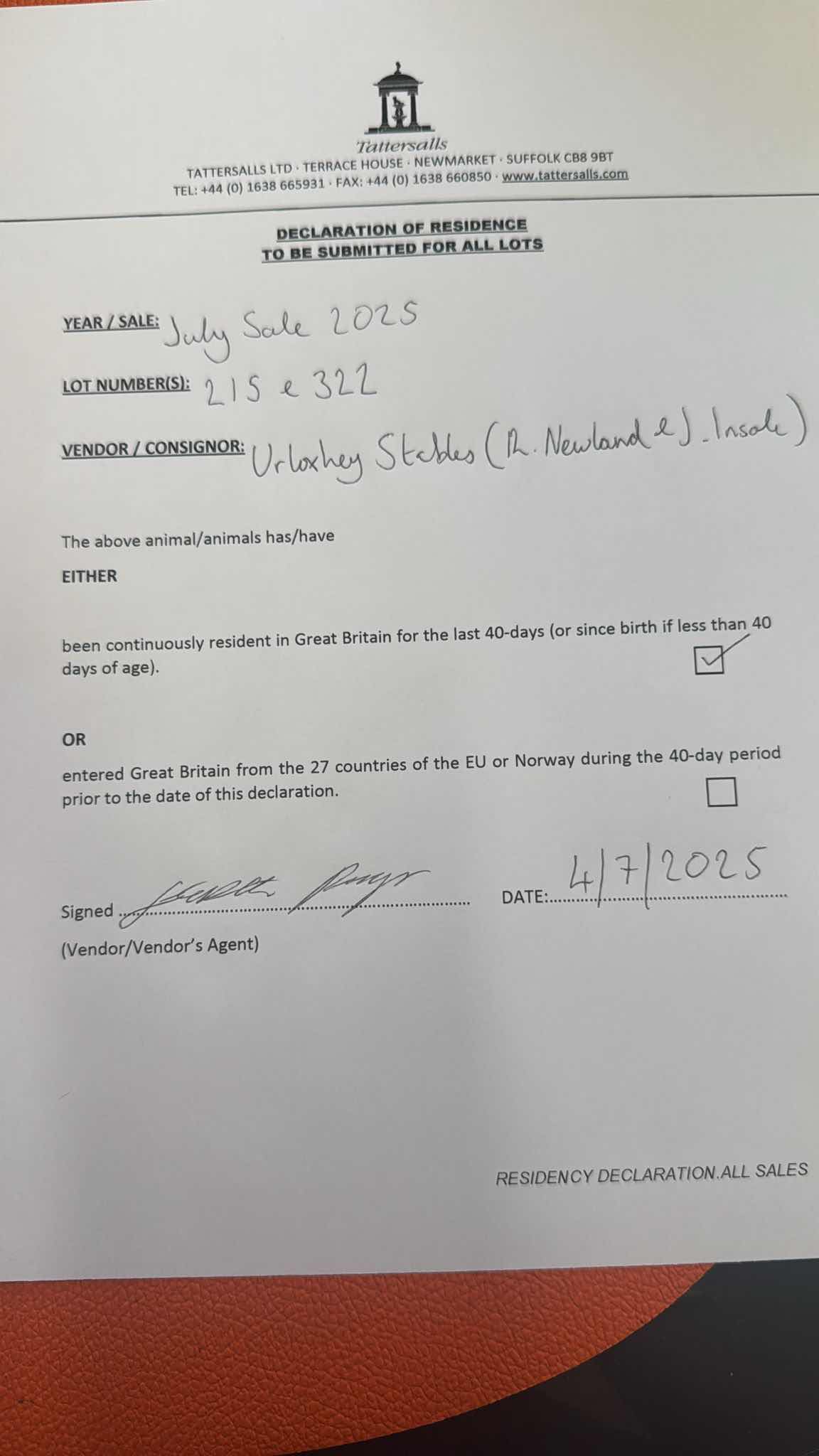 Consignor: Urloxhey Stables (R. Newland & J. Insole)