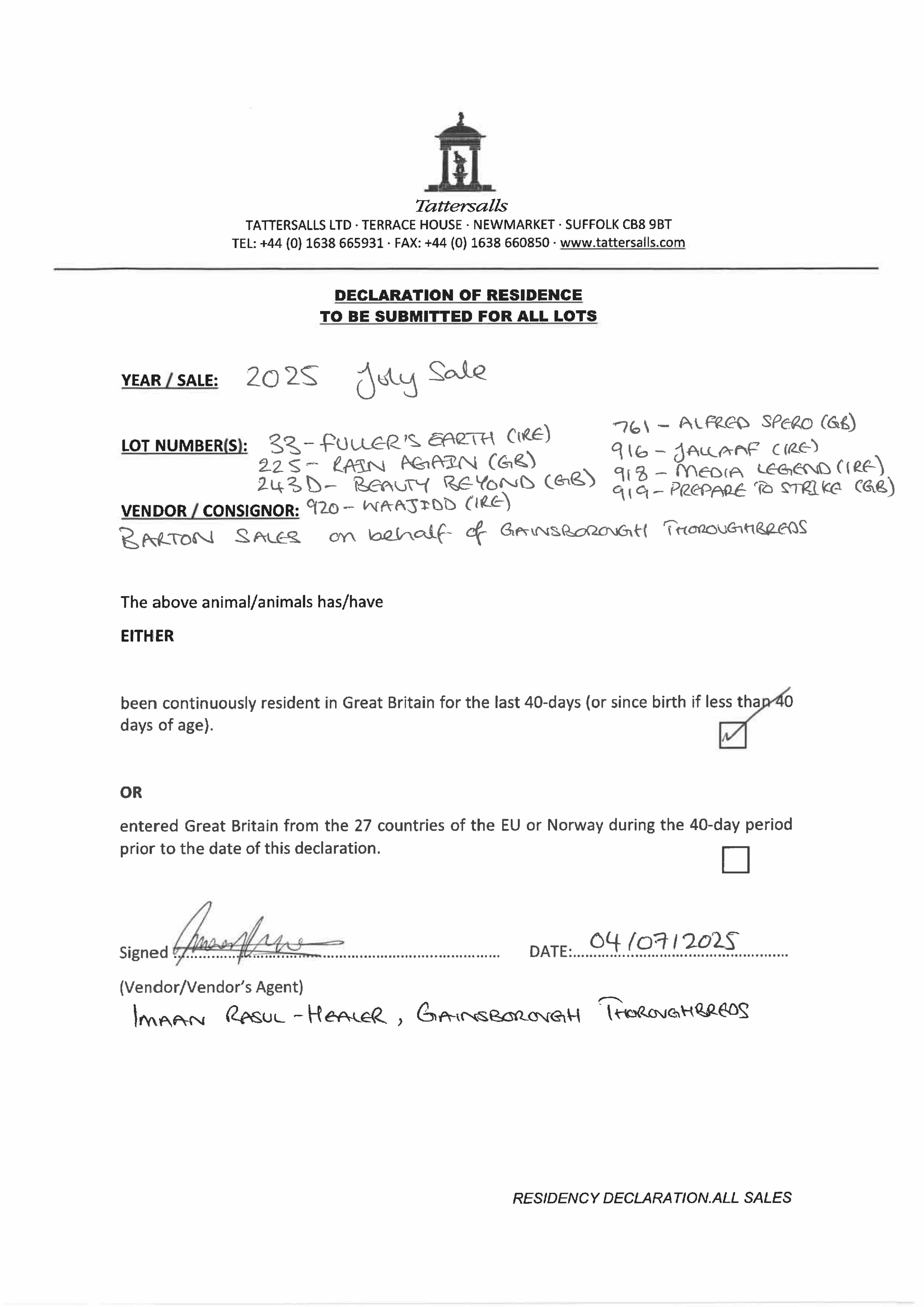 October Yearling Sale, Book 3 2025 lot 1796 F. by Cracksman (GB) 2024, Houghton Bloodstock=>Retain Prosper for K2 Racing Stables 22,000 gns