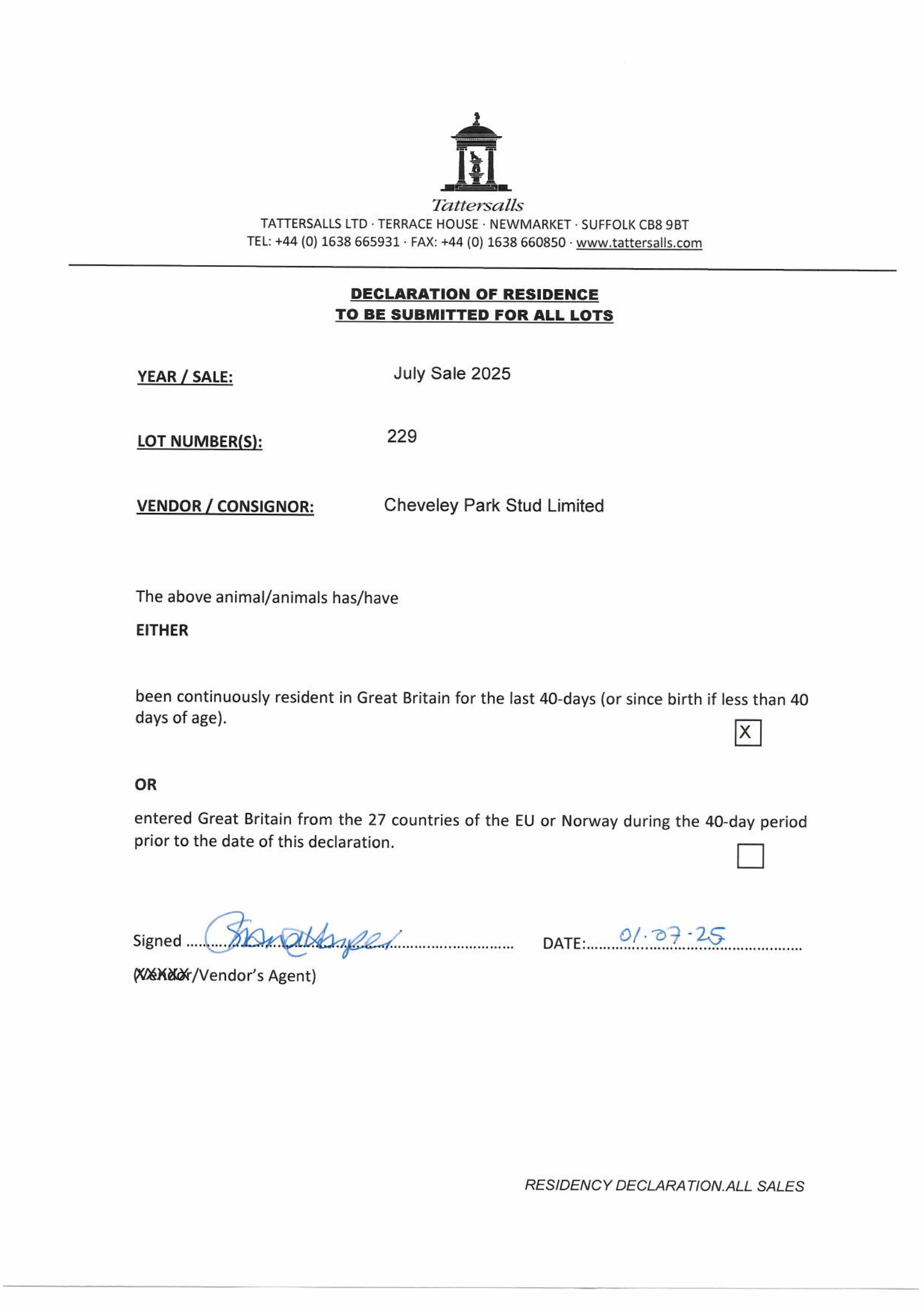 Consignor: Cheveley Park Stud Ltd.