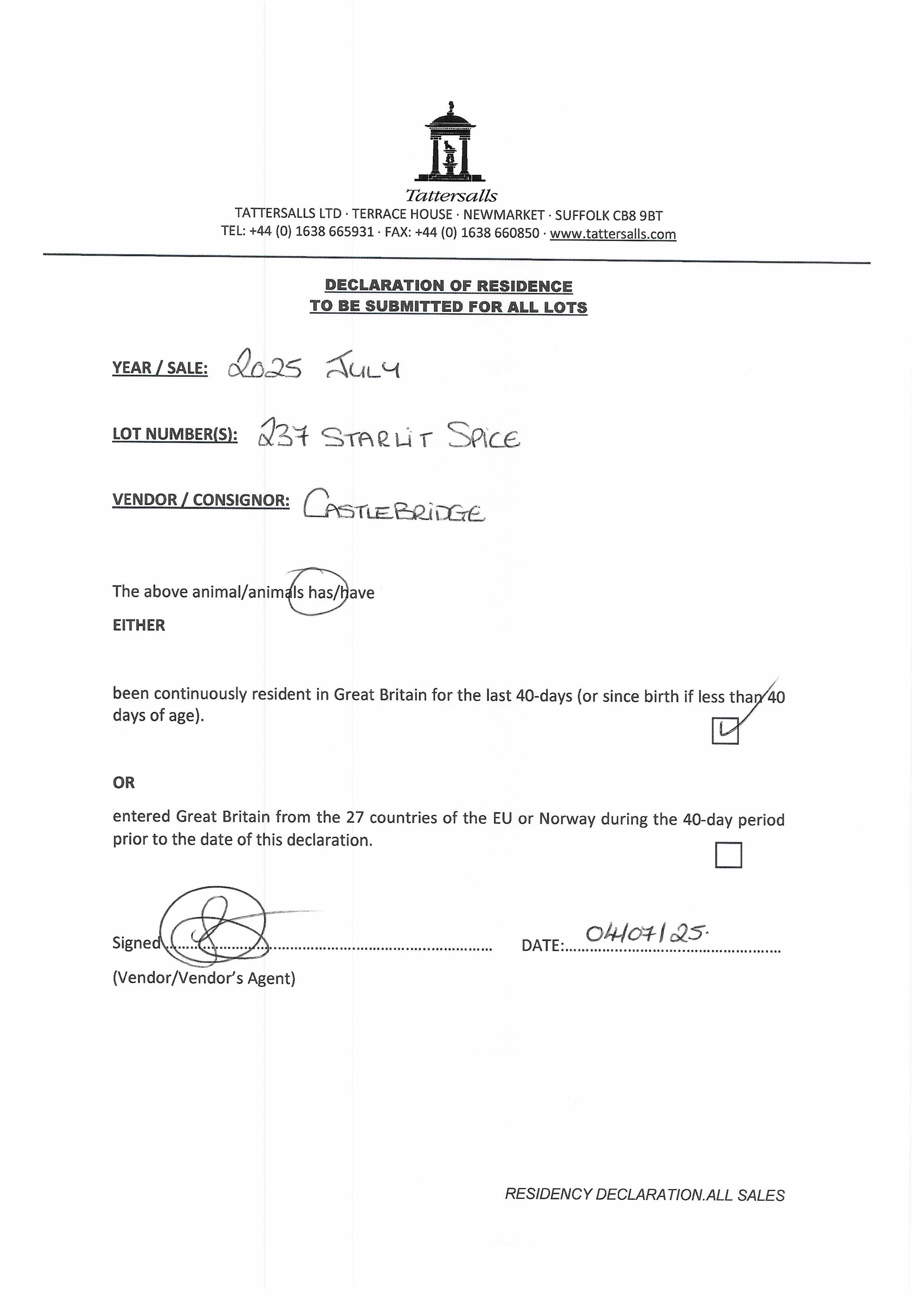 Consignor: The Castlebridge Consignment