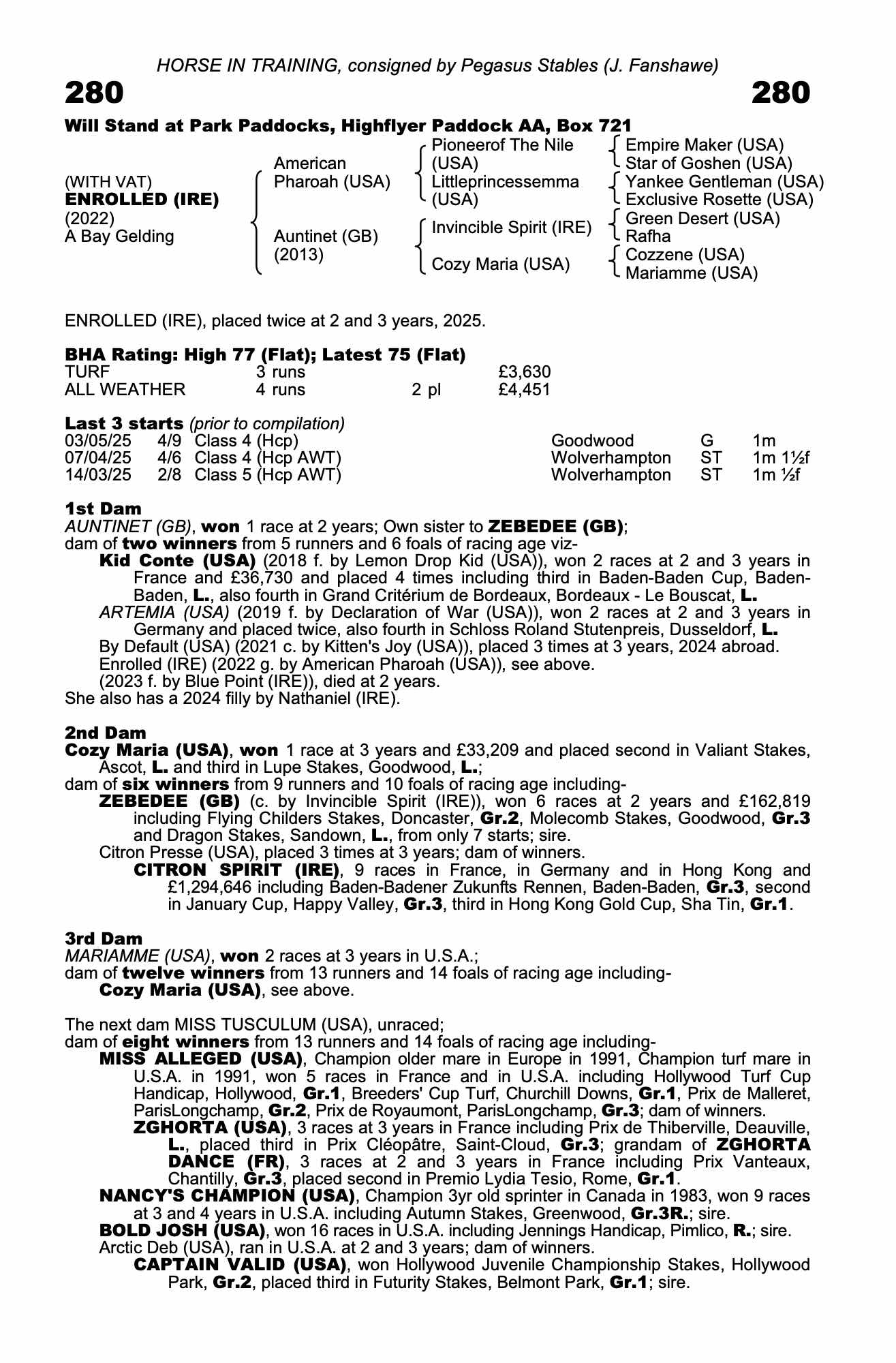 Consignor: Pegasus Stables (J. Fanshawe)