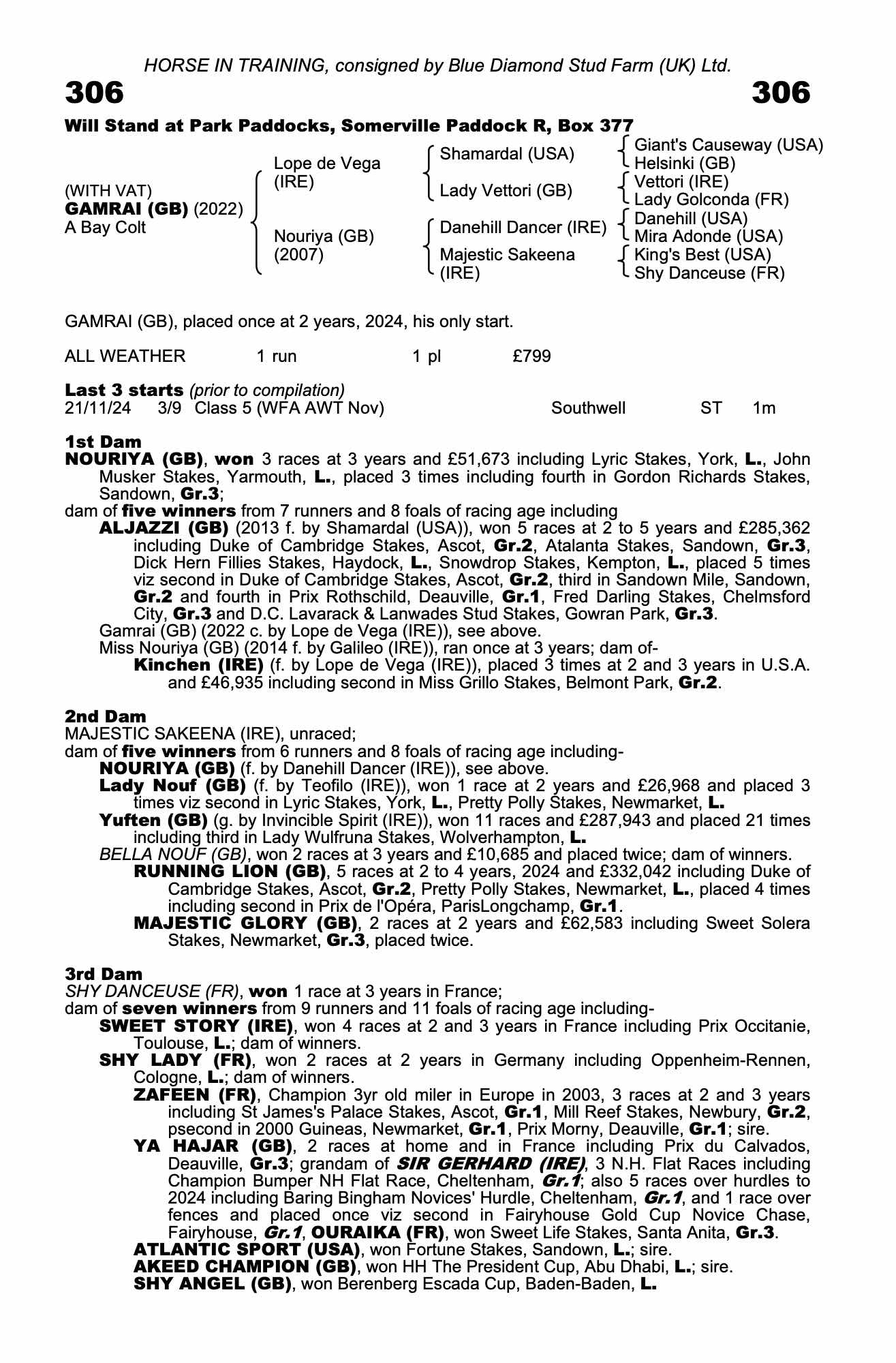 Consignor: Blue Diamond Stud Farm (UK) Ltd.