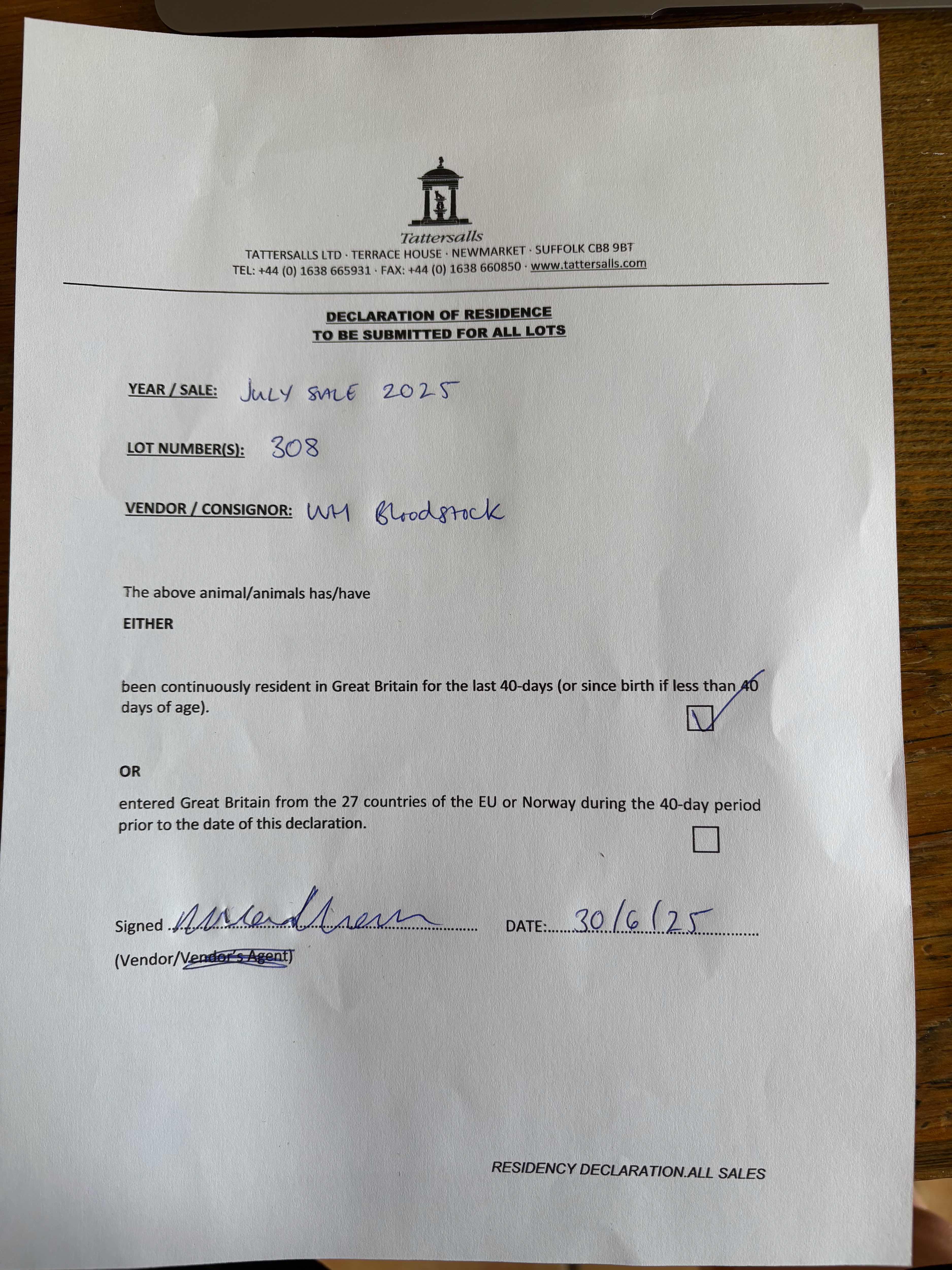 Consignor: WH Bloodstock