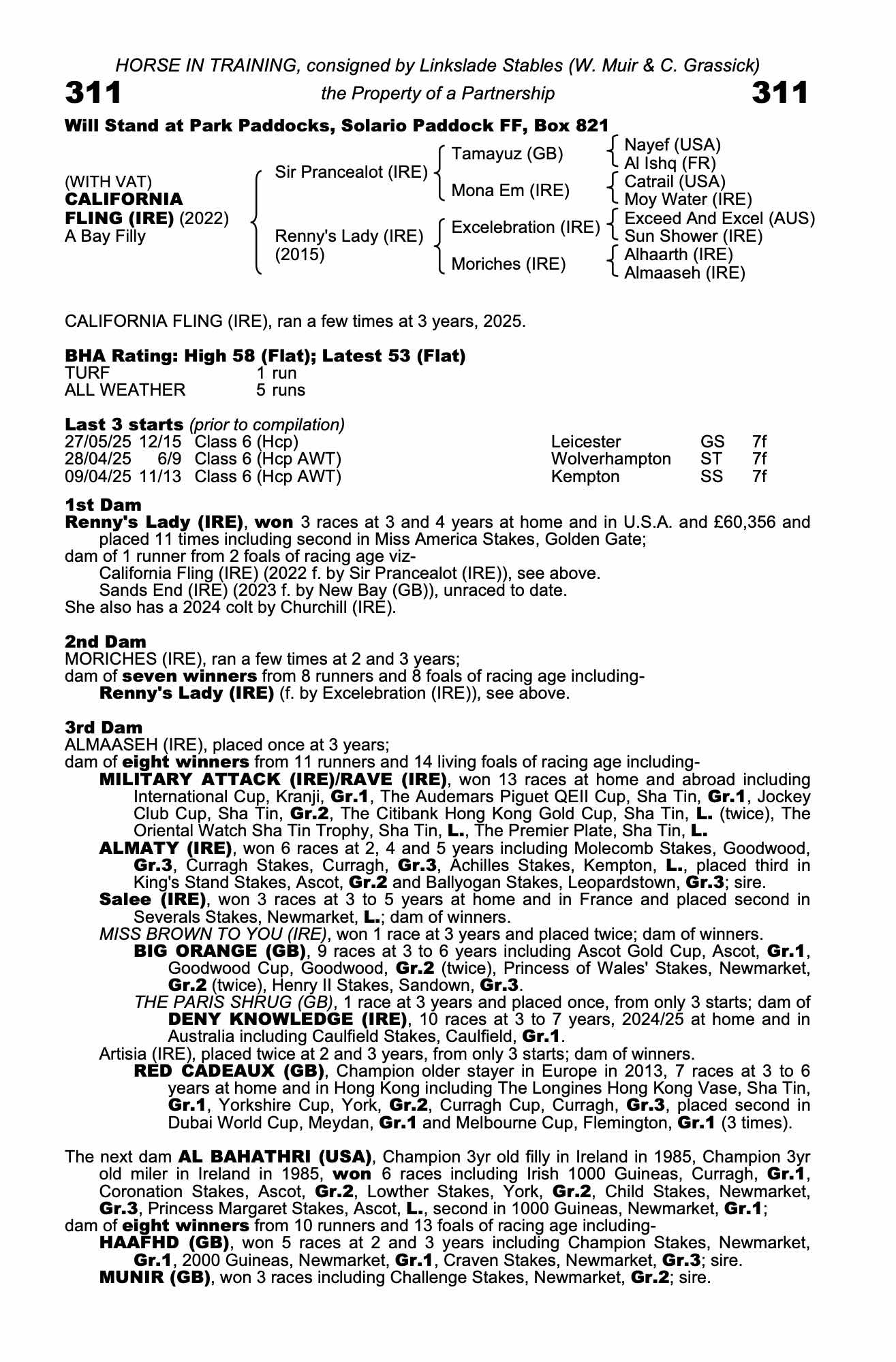 Consignor: Linkslade Stables (W. Muir & C. Grassick)