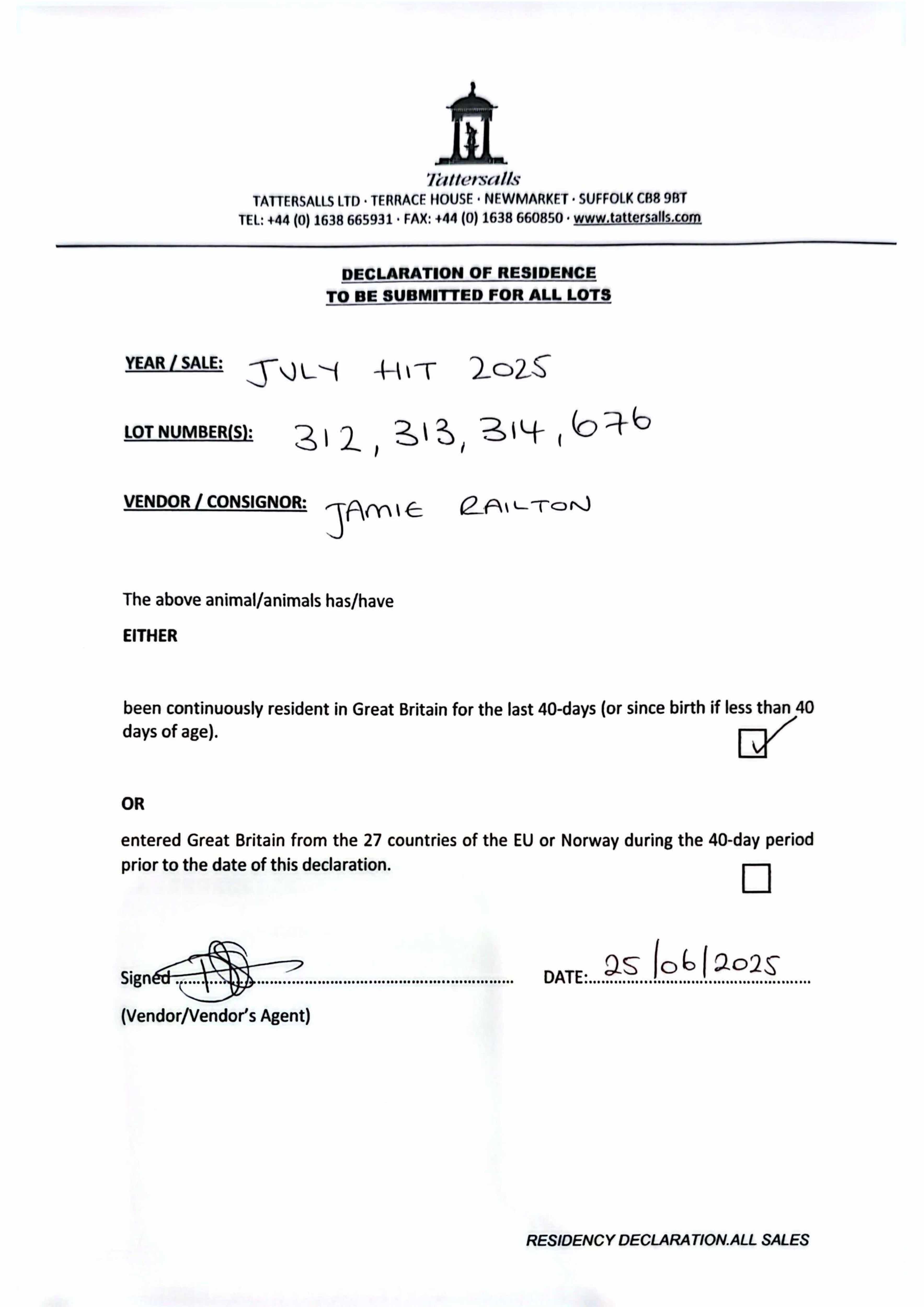 Consignor: Jamie Railton (Agent)