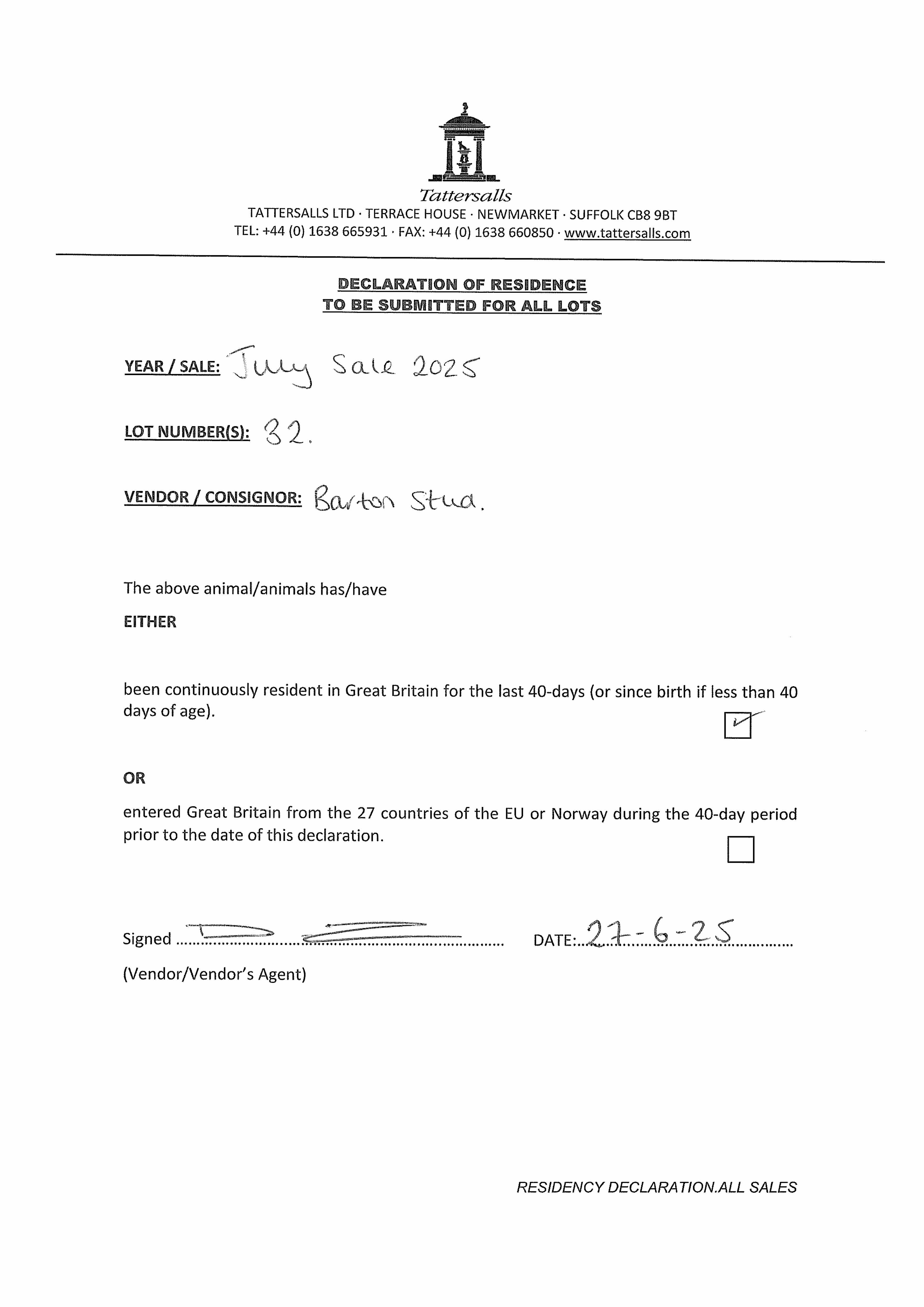 Online Sale - 19th November 2025 lot 12 C. by A'Ali (IRE) 2024, Barton Stud=>Stuart Williams 6,500 gns
