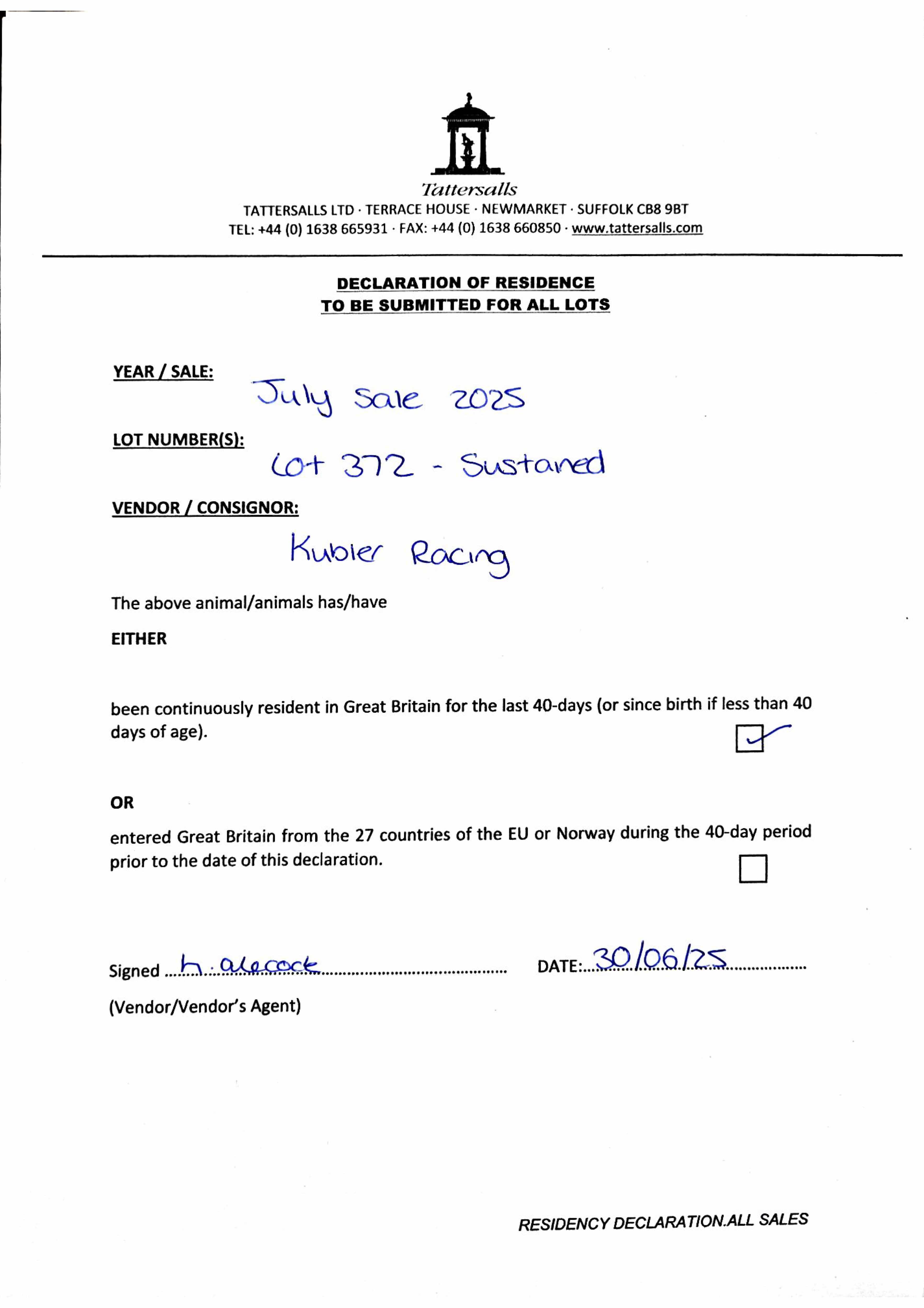 Online Sale - 12th December 2024 lot 73, Kubler Racing Ltd=>Vendor 3,200 gns