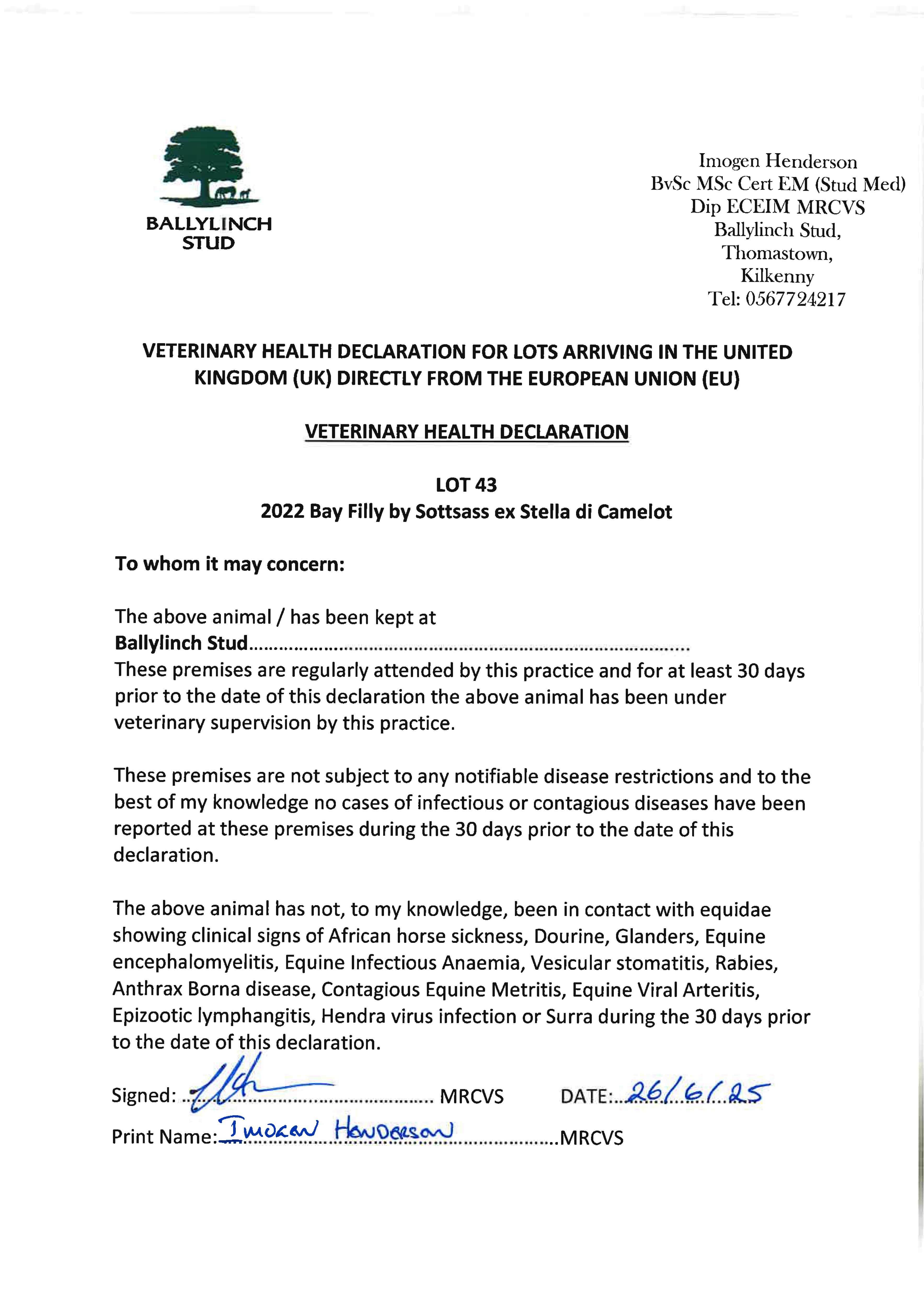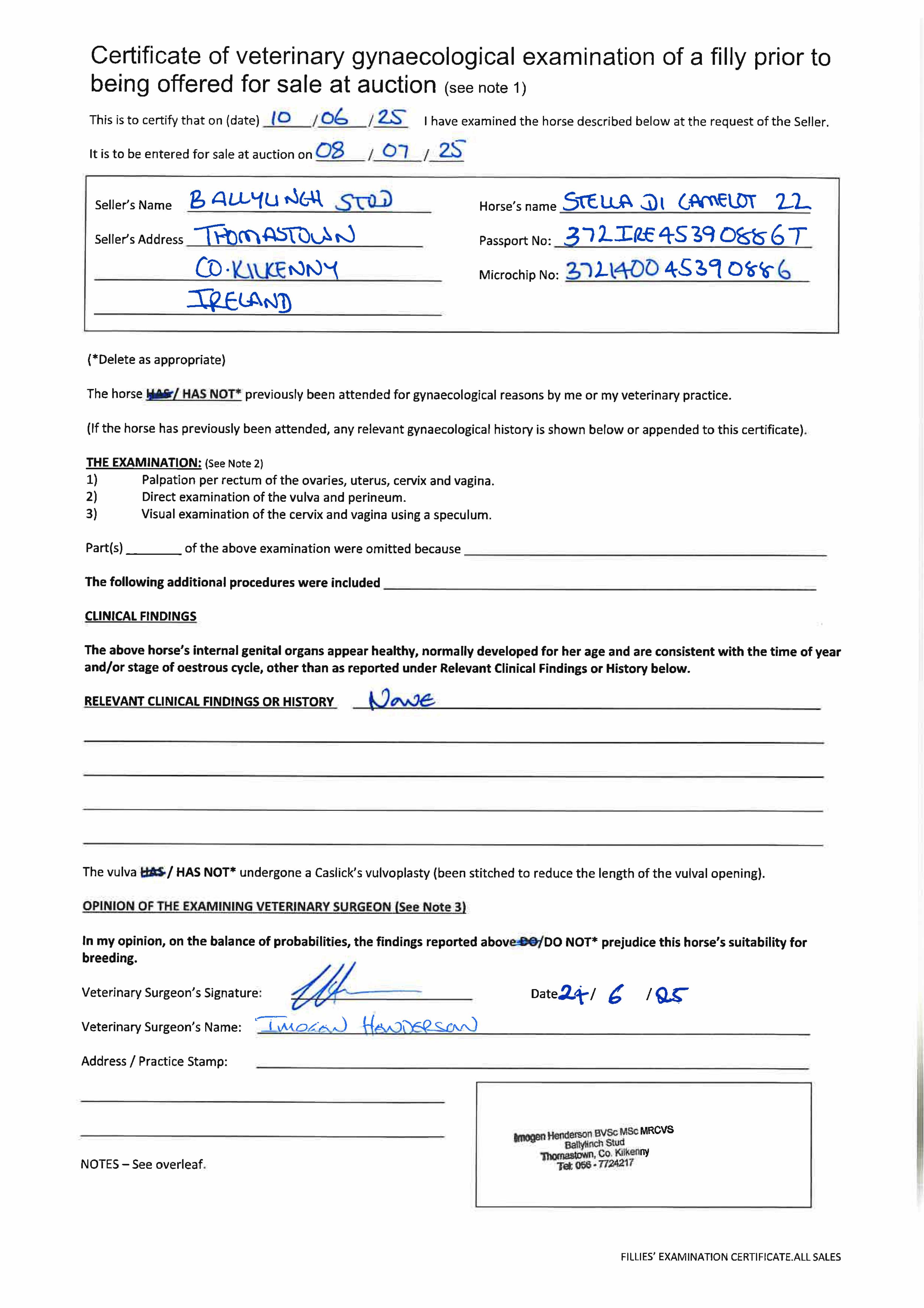 Fillies Examination Cert