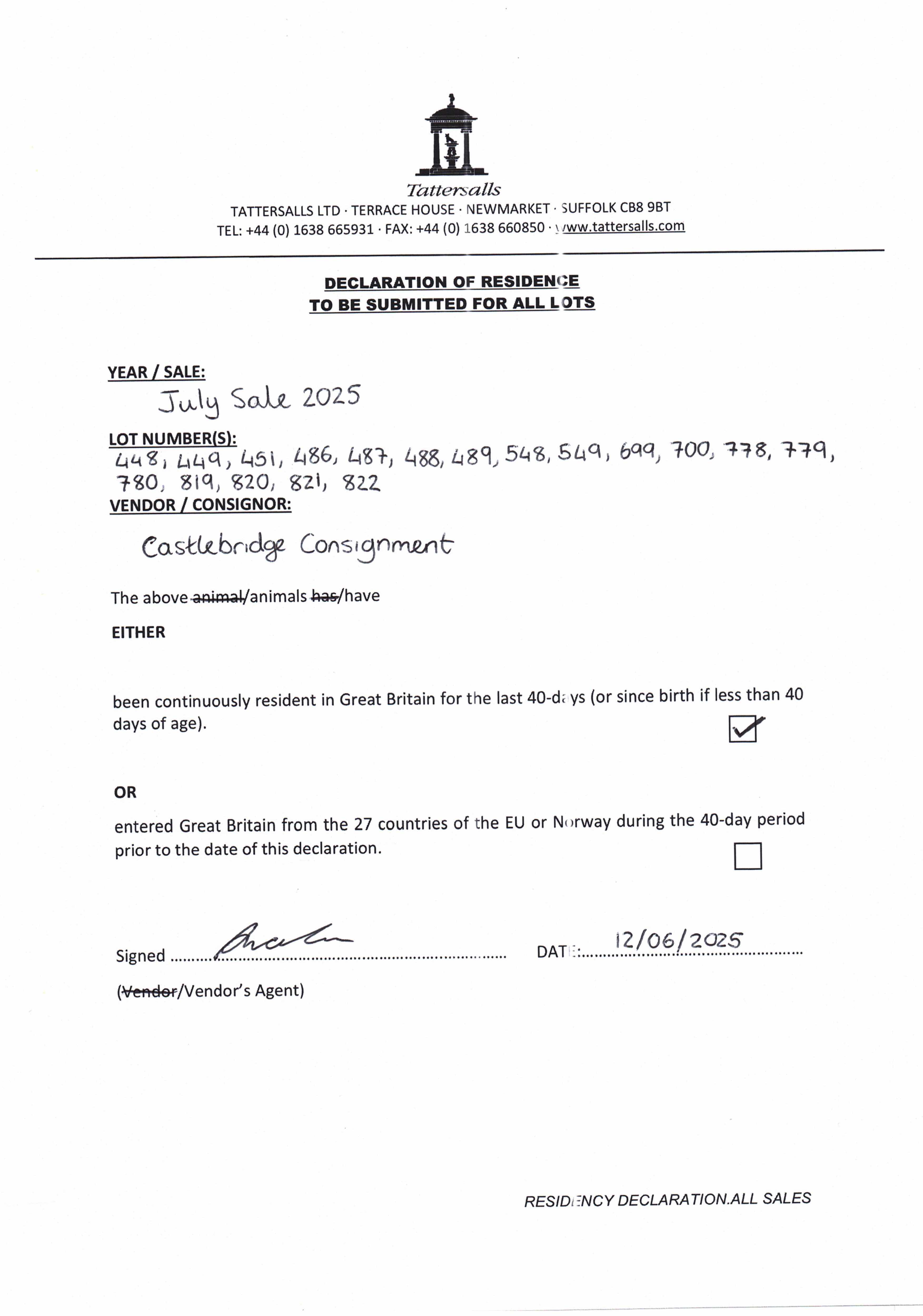 Consignor: The Castlebridge Consignment