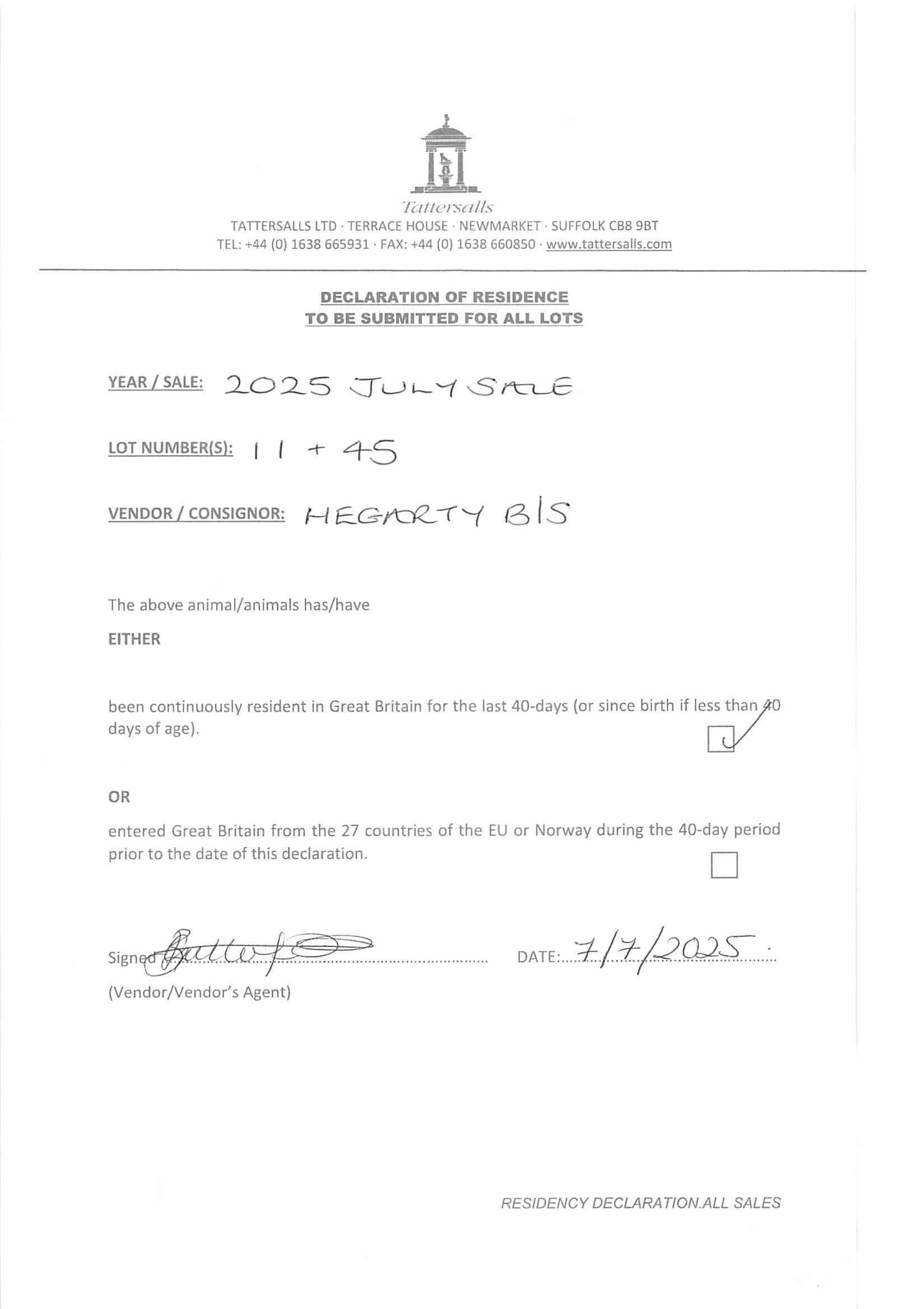 Online Sale - 13th August 2025 lot 138, Hegarty Bloodstock=>Lot Not Sold 900 gns