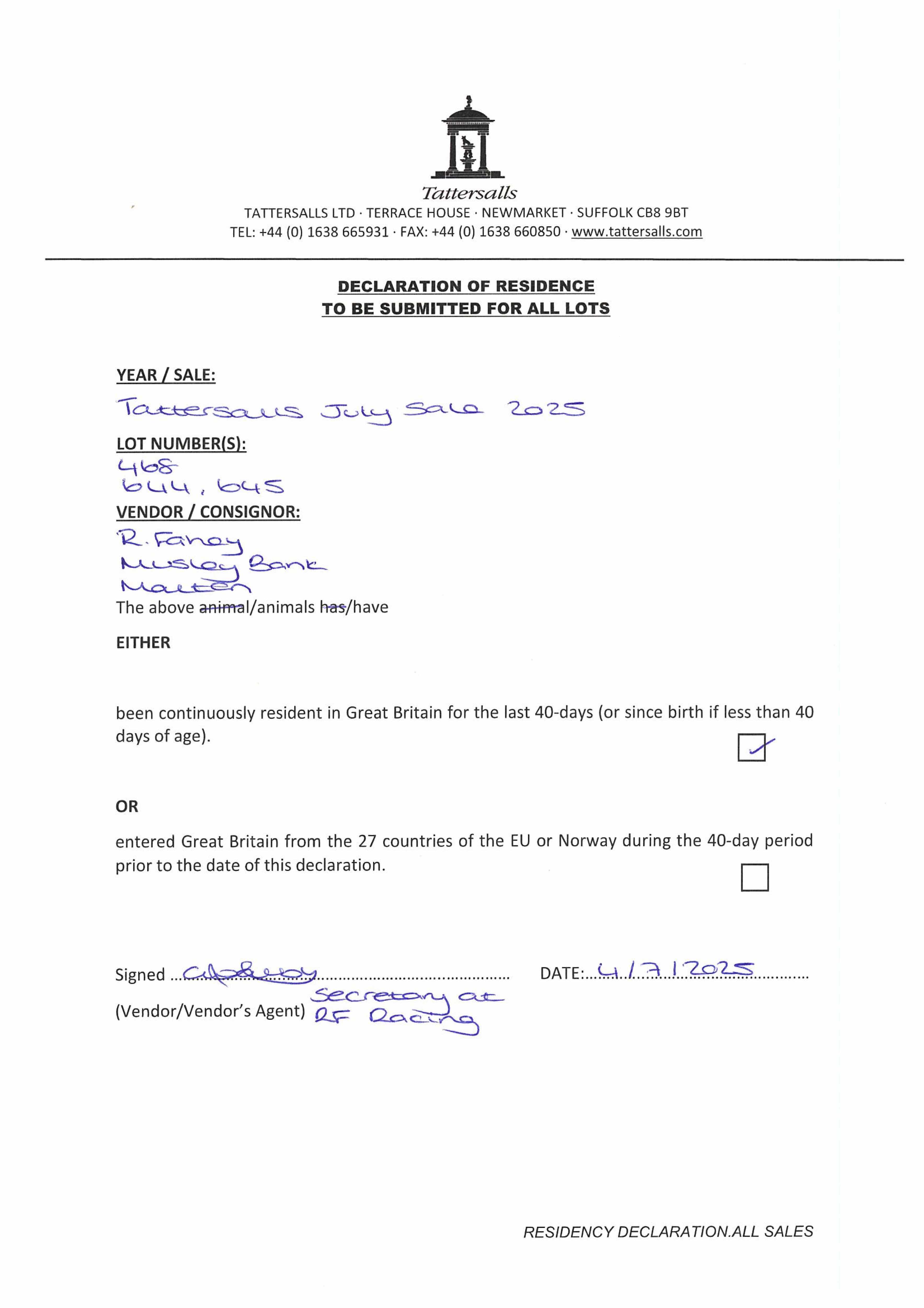 Consignor: Musley Bank Stables (R. Fahey)
