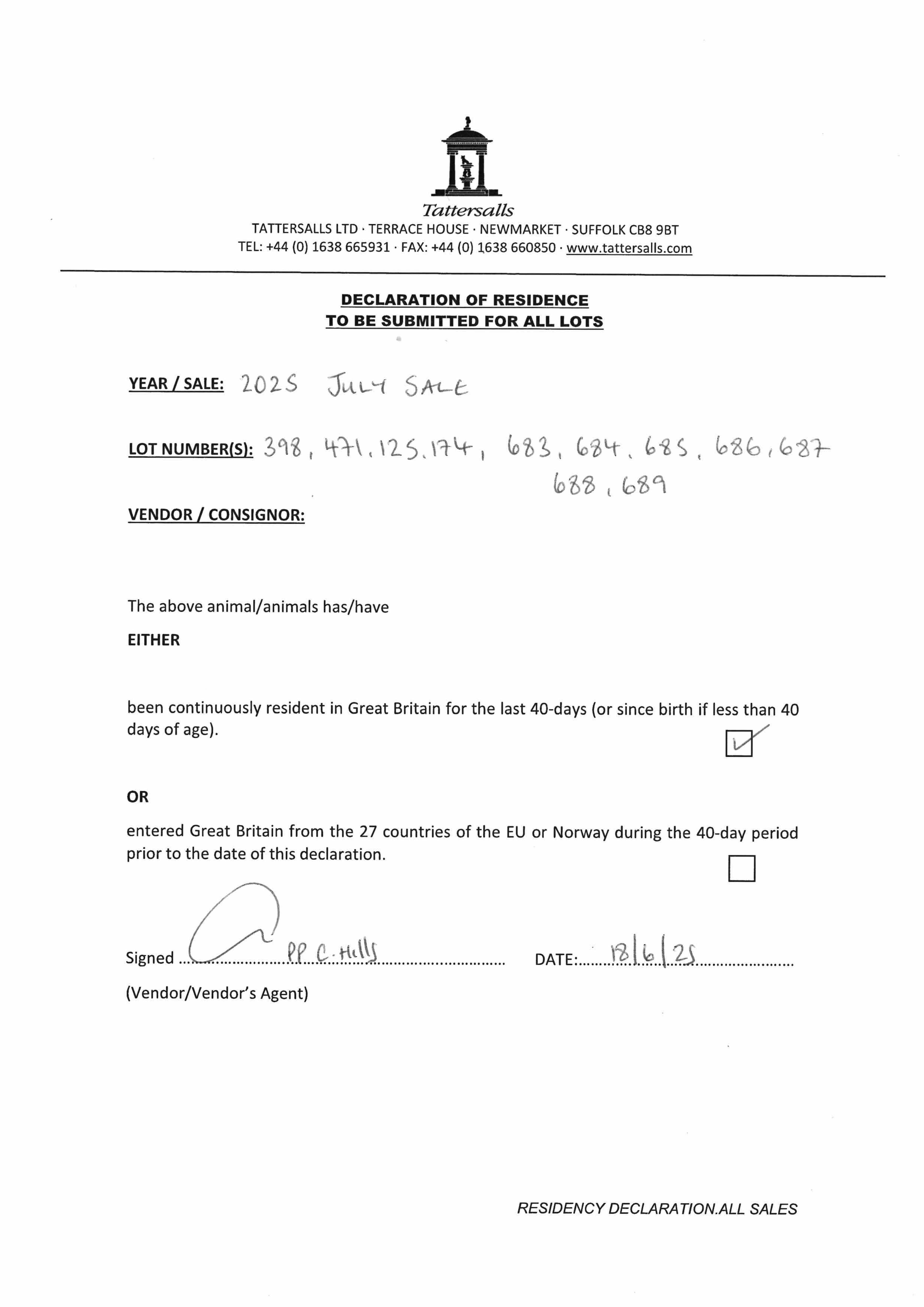 Consignor: Shadwell Estate Company Ltd.