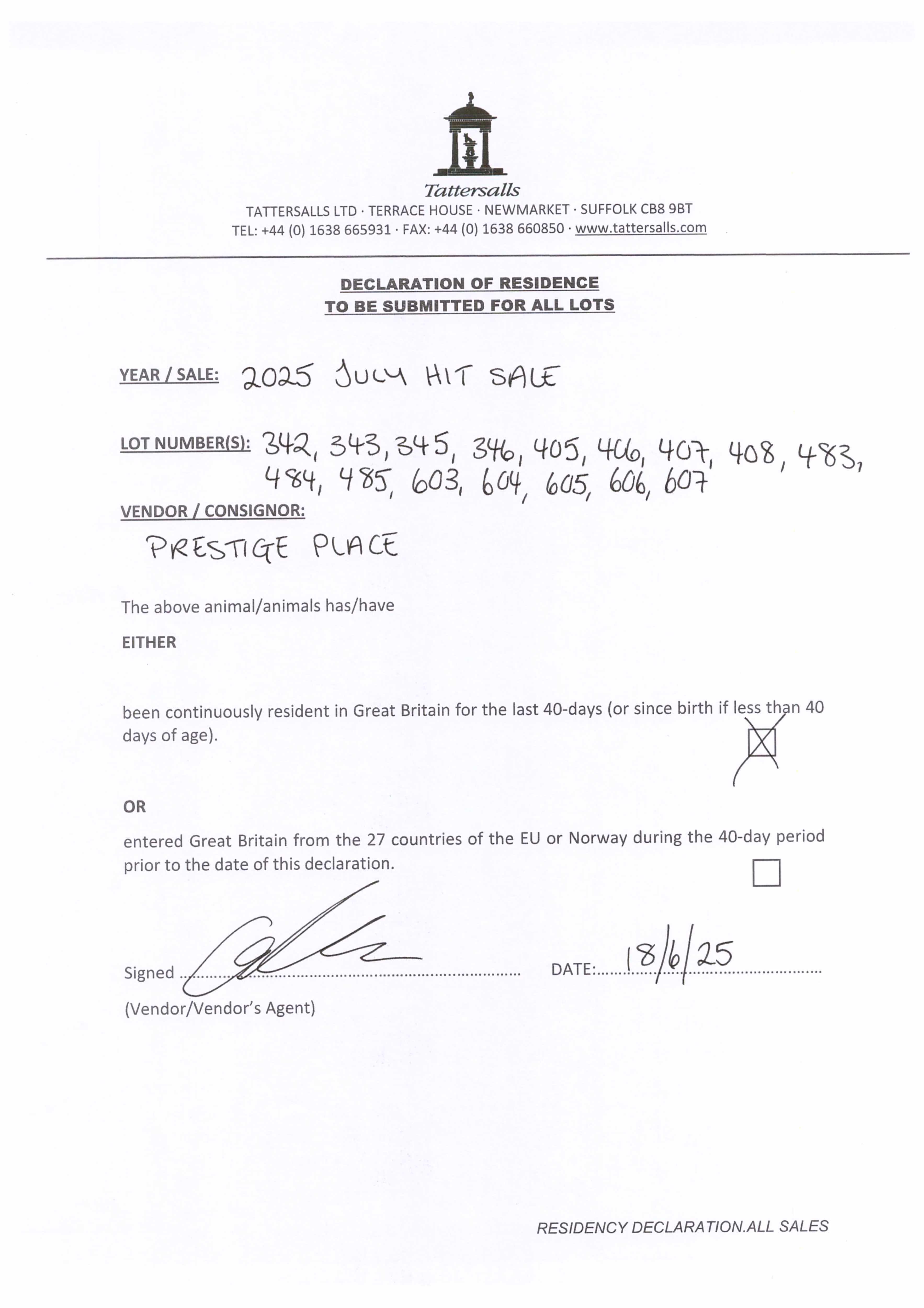 Consignor: Prestige Place (M. Botti)