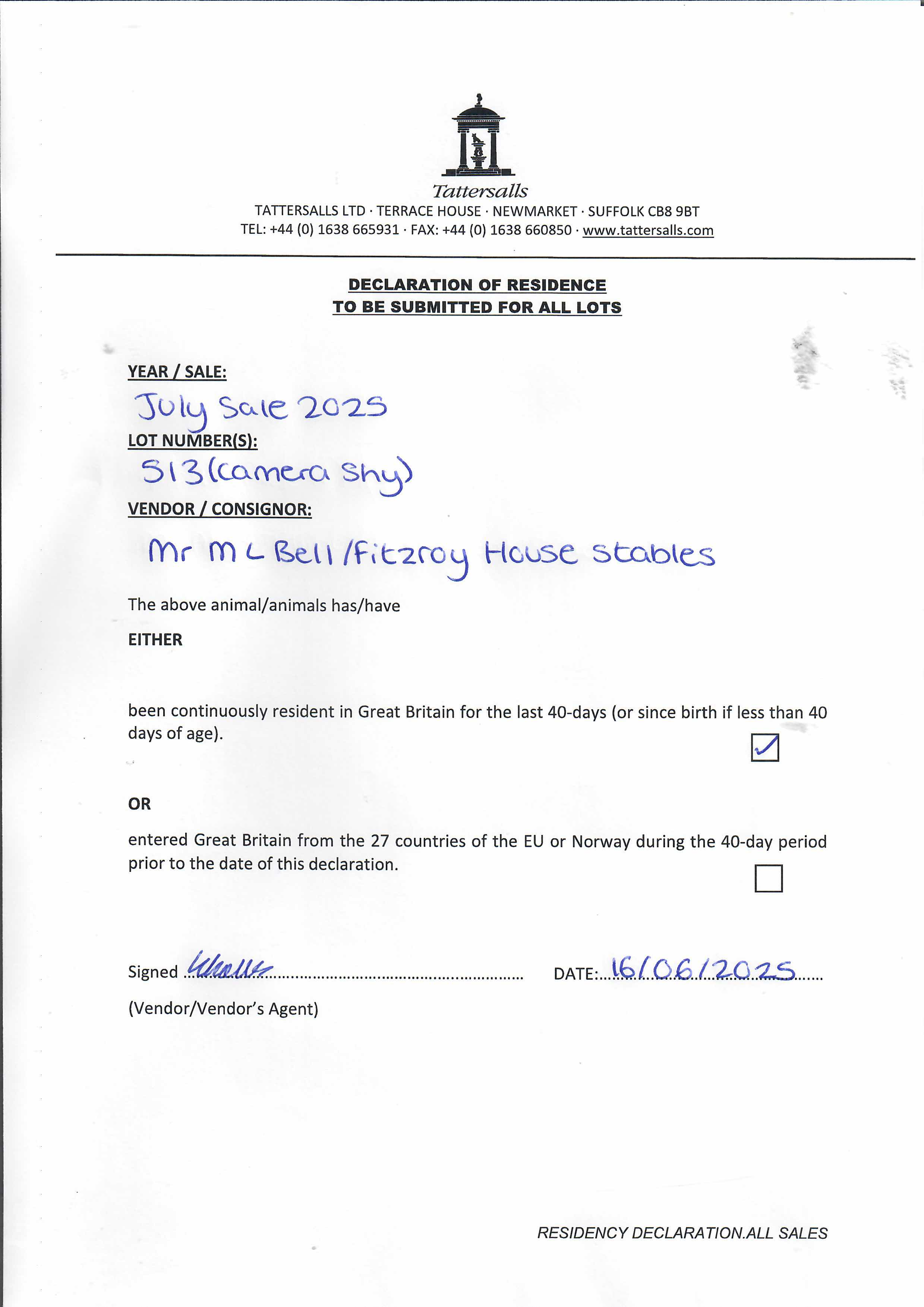 Consignor: Fitzroy House Stables (M. Bell)