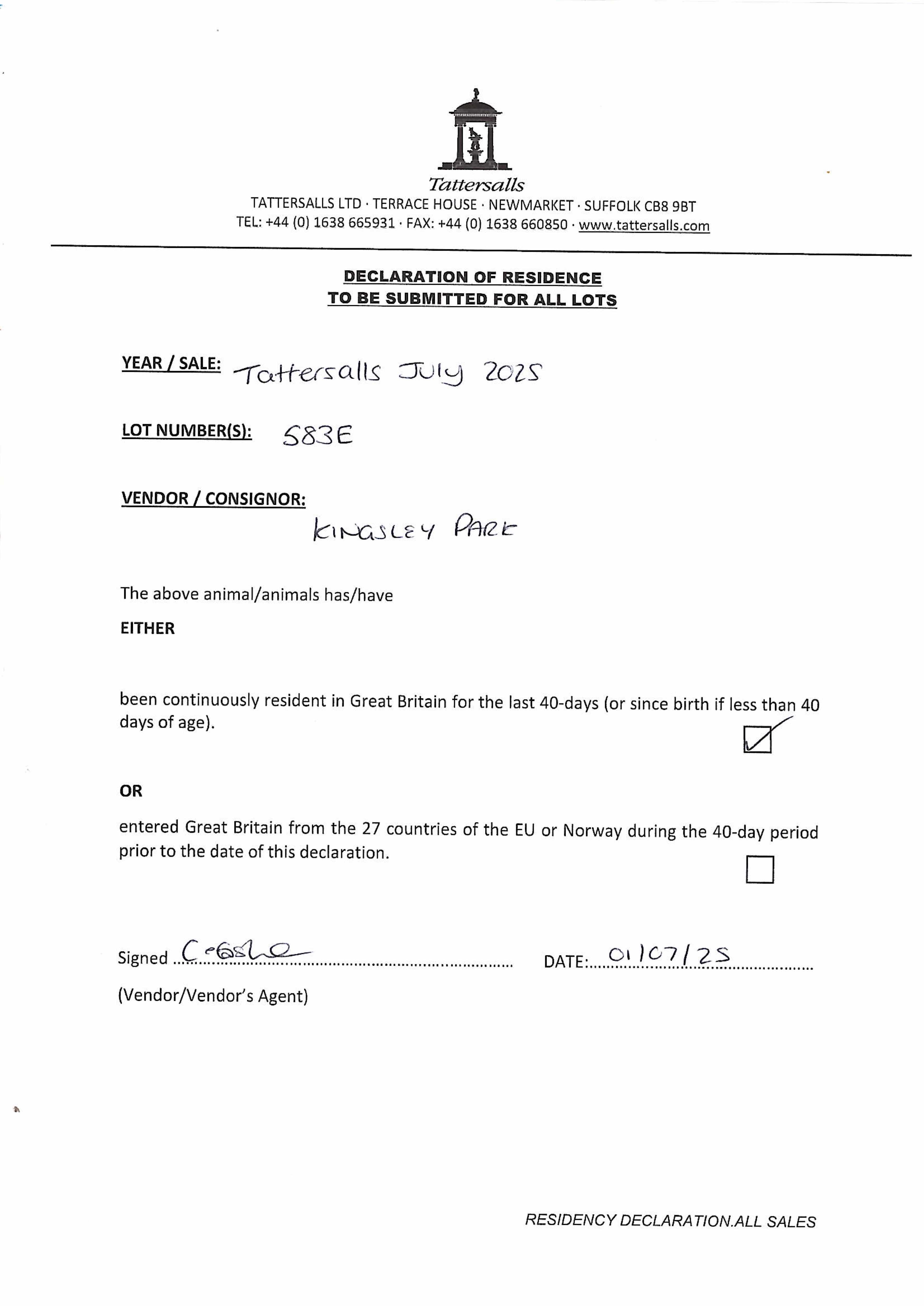 Consignor: Kingsley Park