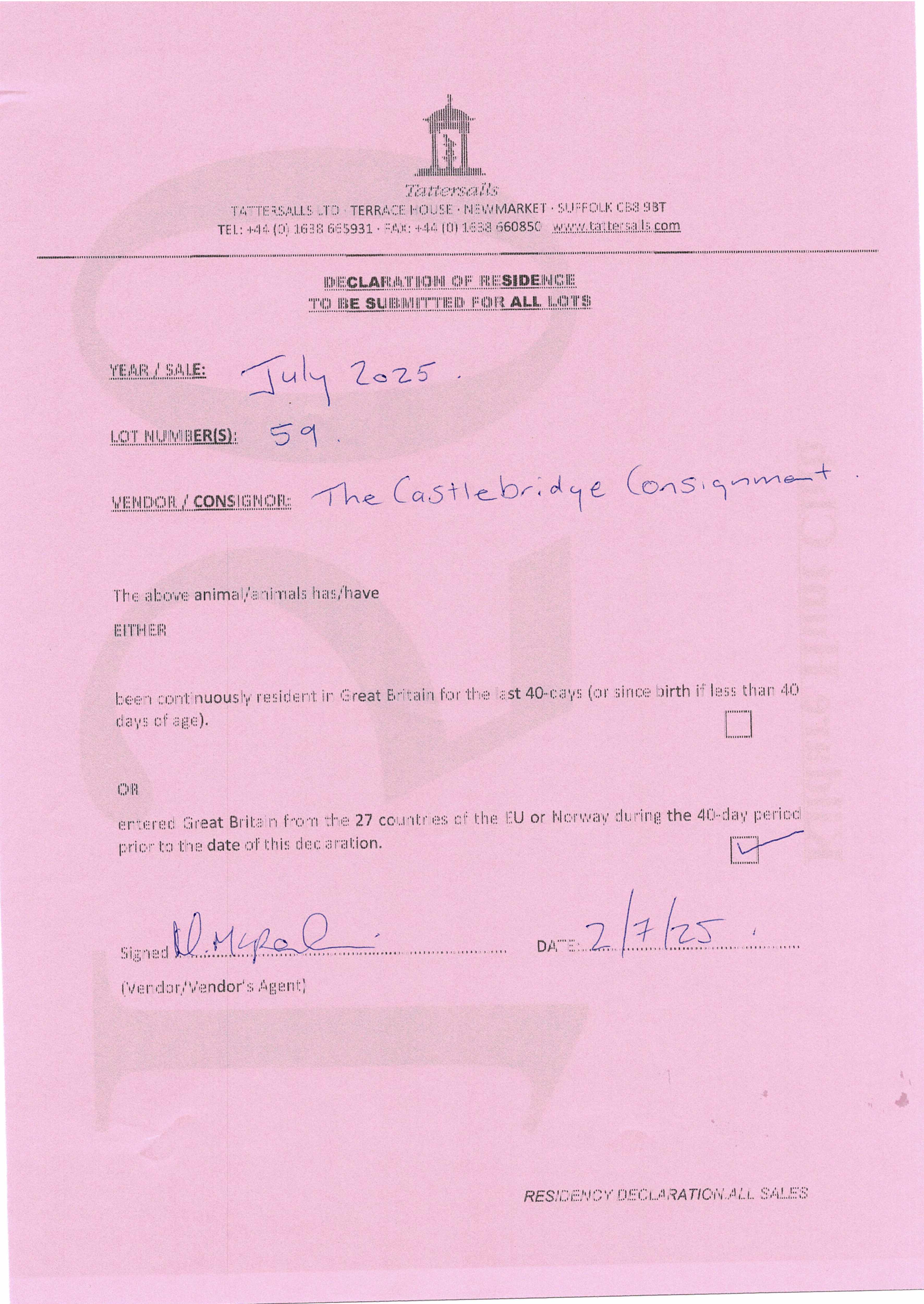Consignor: The Castlebridge Consignment