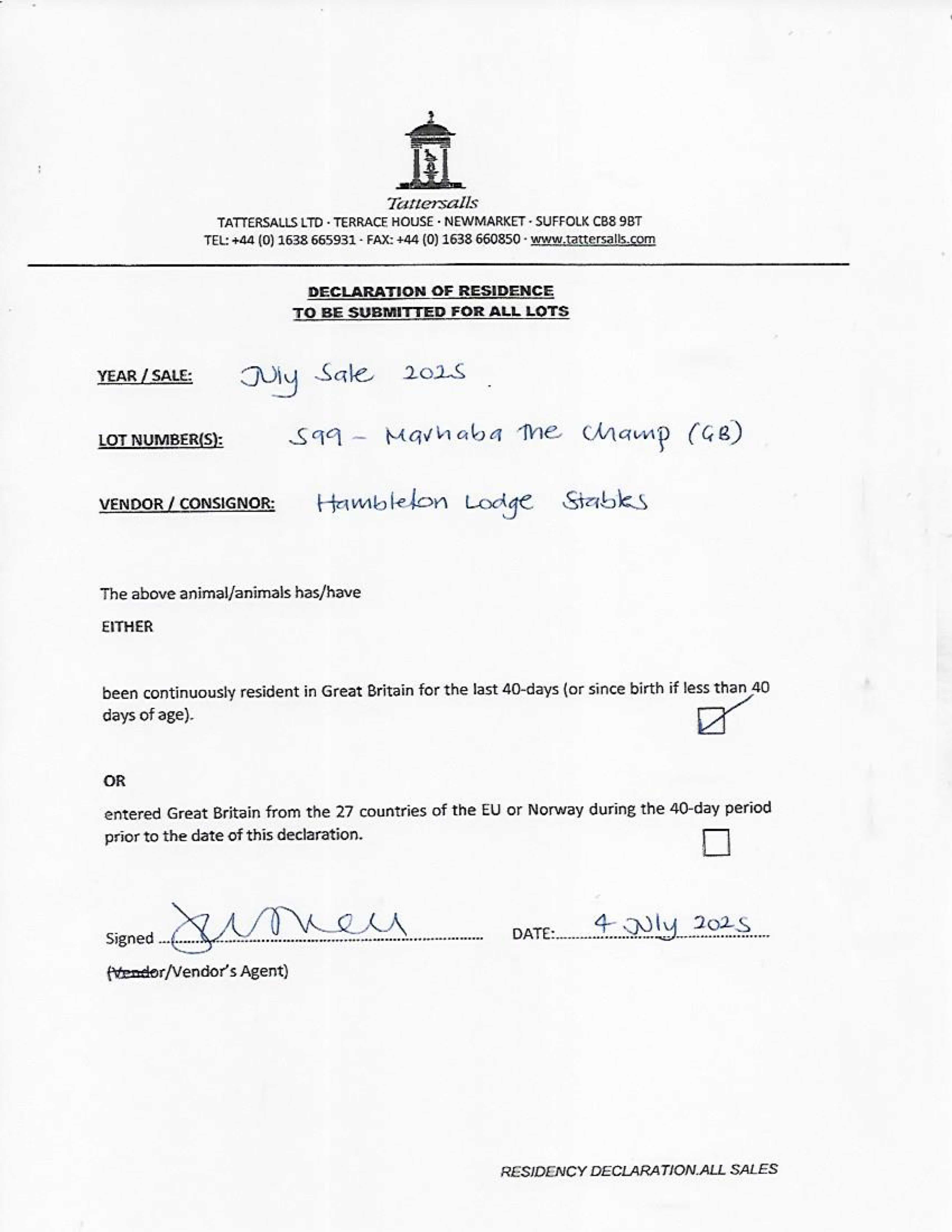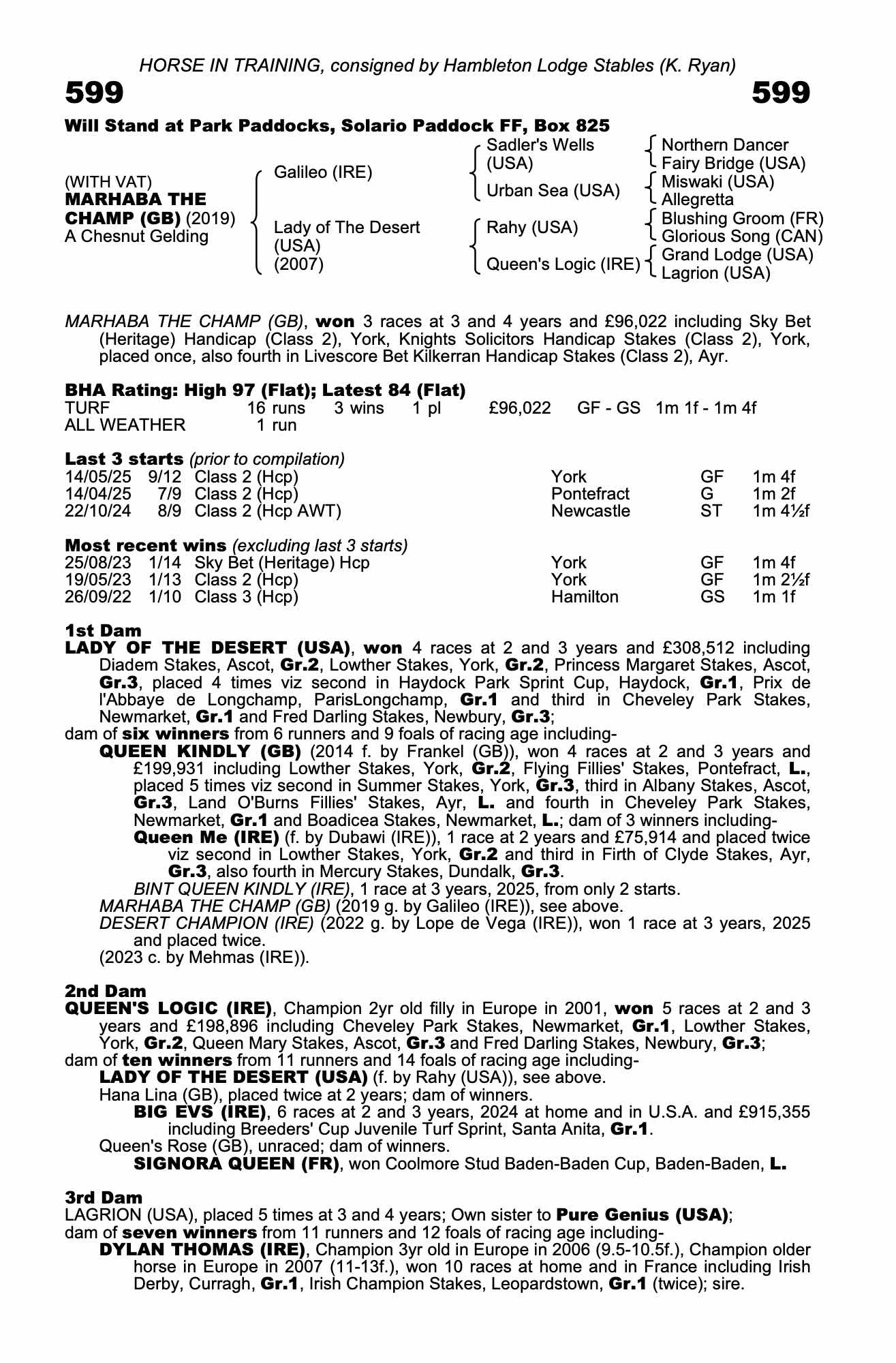 July Sale 2025 lot 766 Desert Champion (IRE) (G. by Lope de Vega (IRE)), Jamesfield Stables (J. Tate)=>PT Midgley 4,000 gns