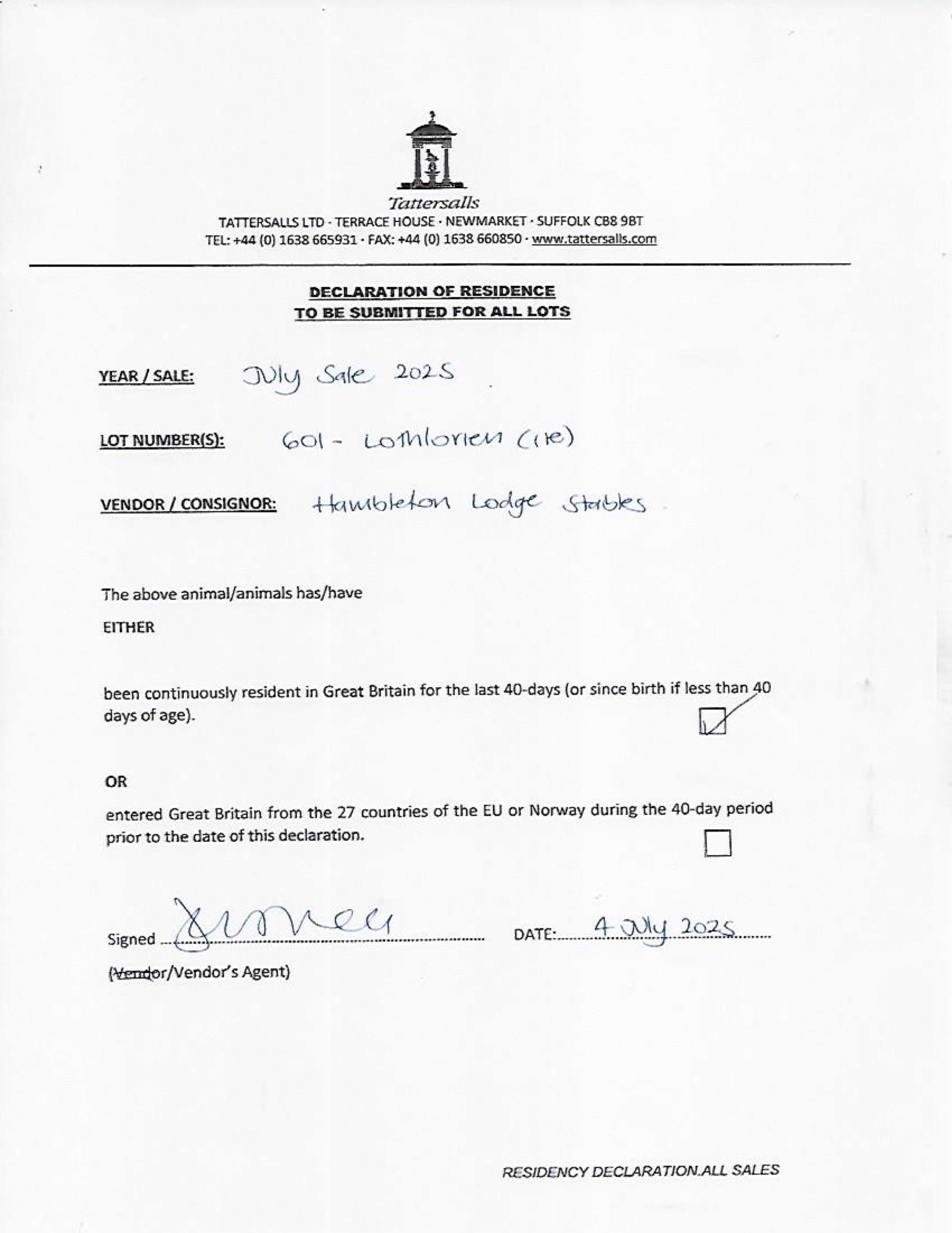 Consignor: Hambleton Lodge Stables (K. Ryan)