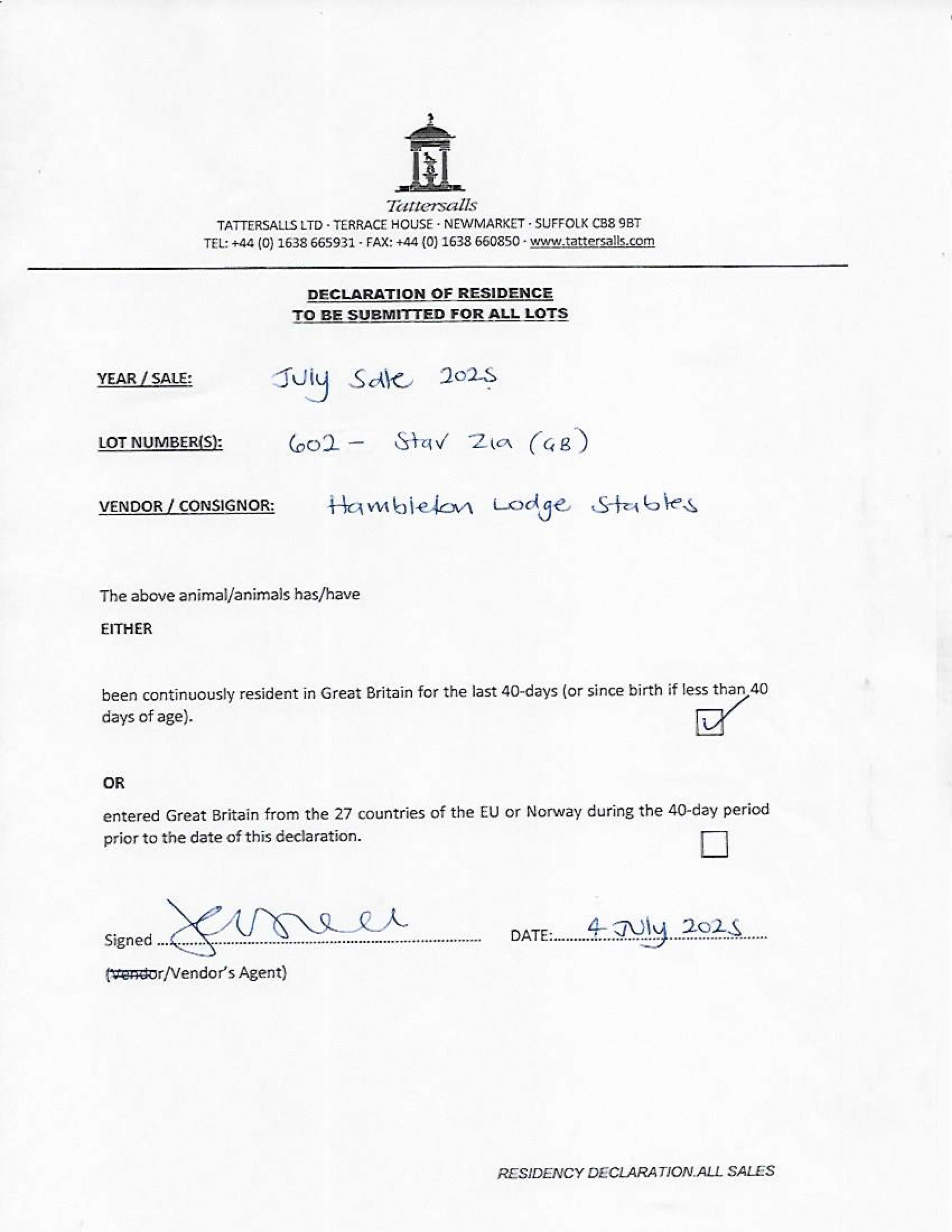 Consignor: Hambleton Lodge Stables (K. Ryan)