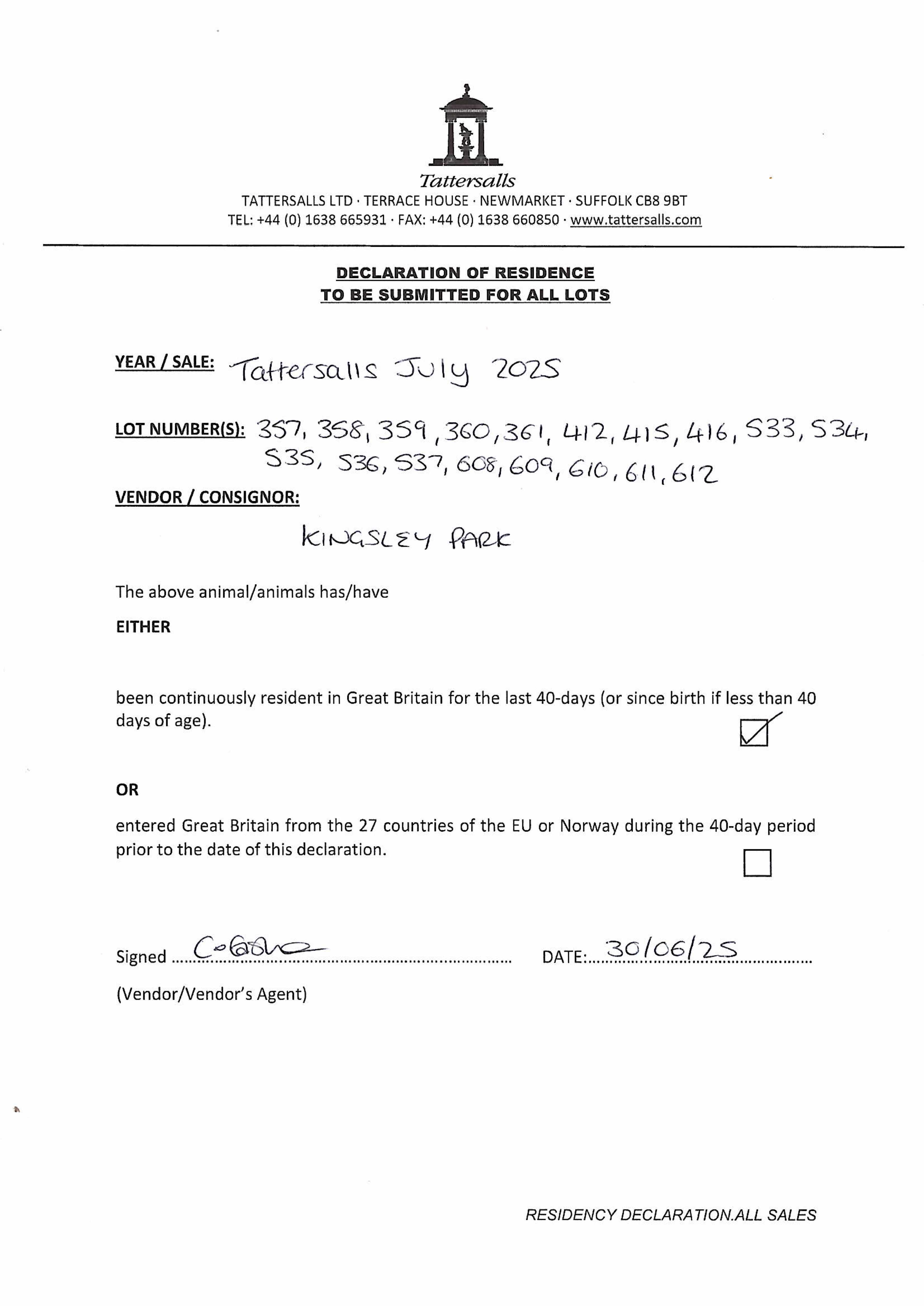 Consignor: Kingsley Park