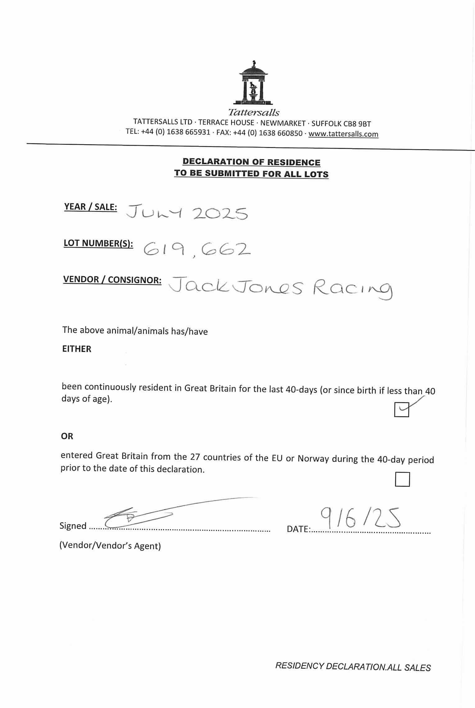 Consignor: Jack Jones Racing