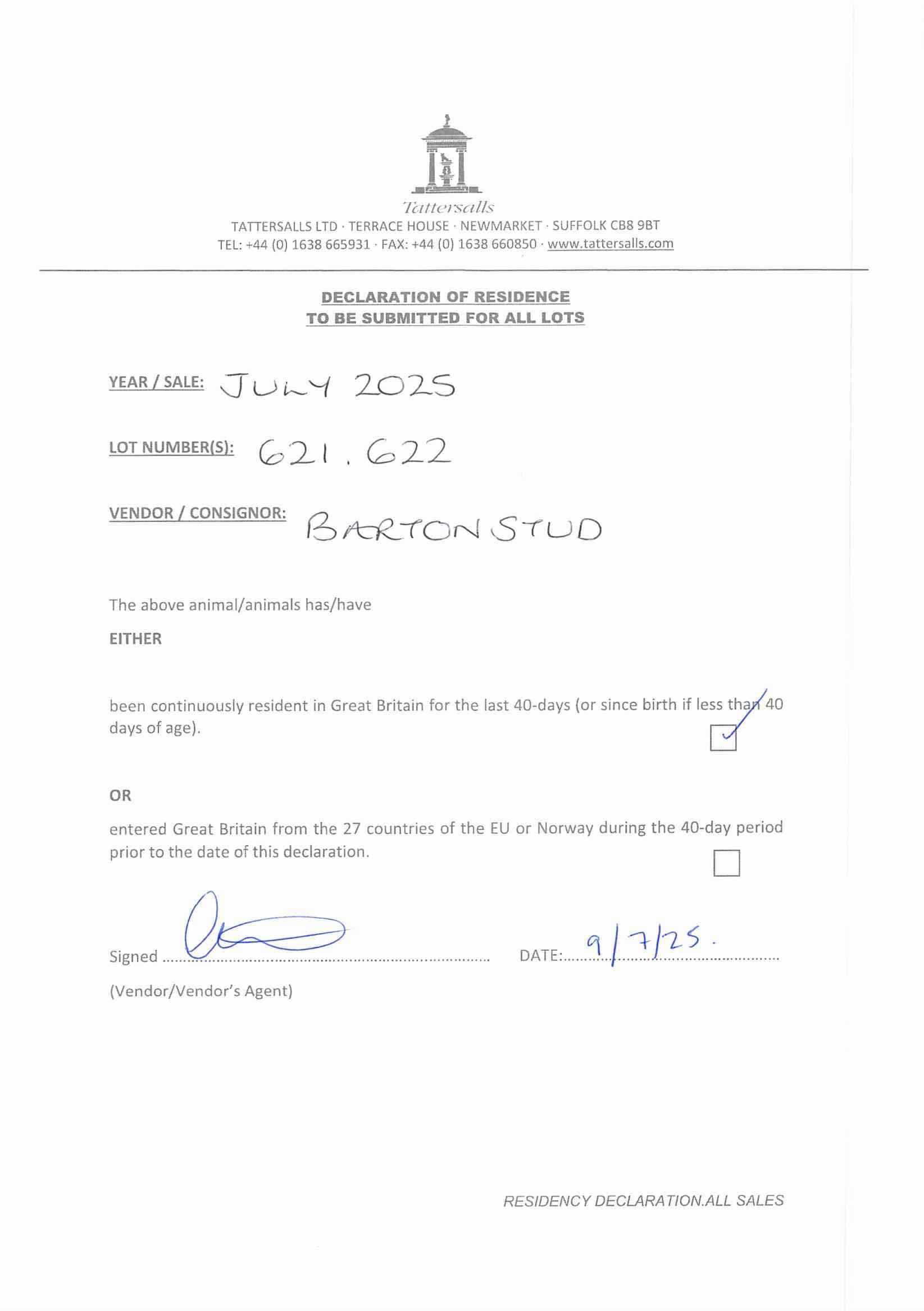 Residency Declaration