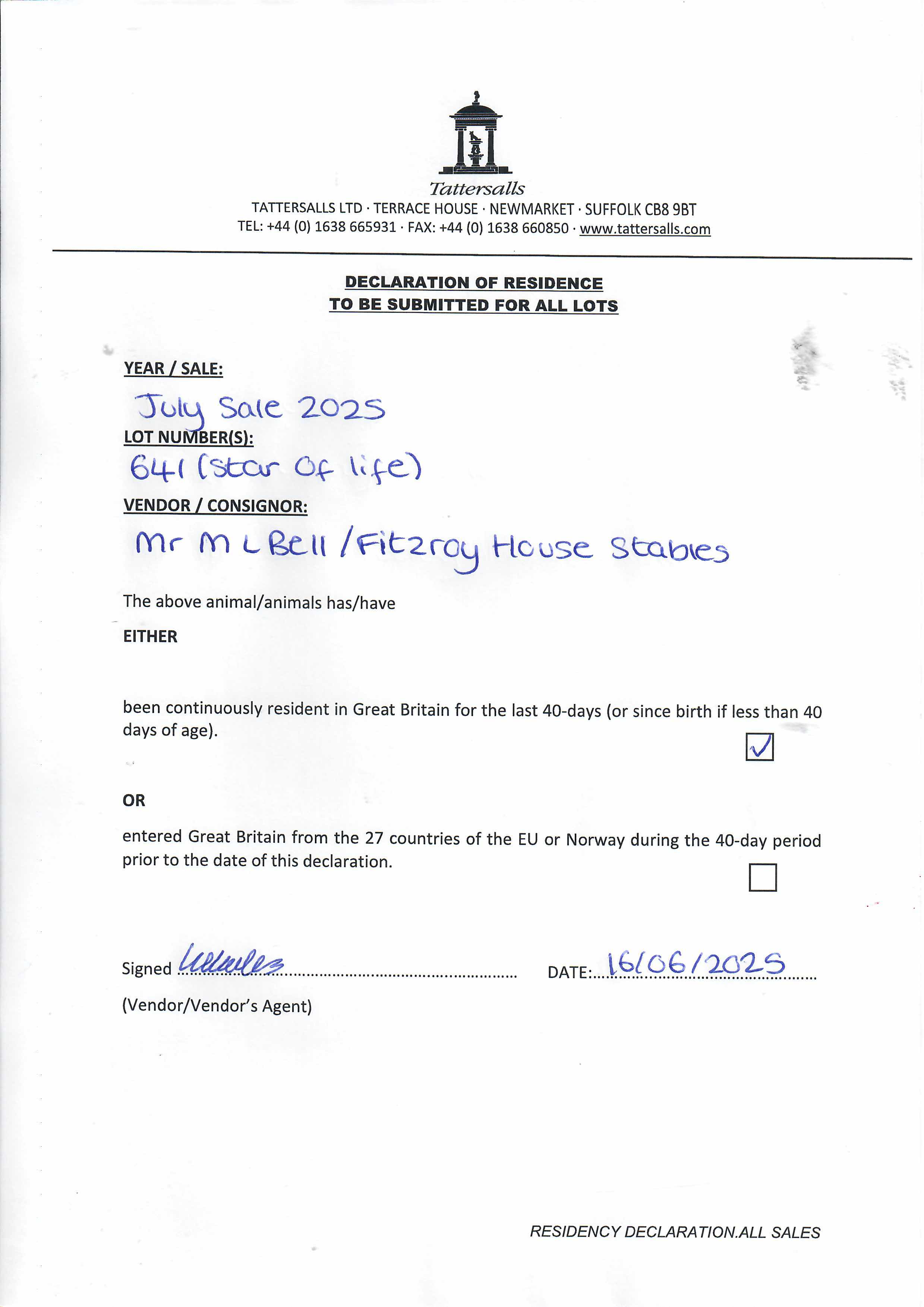 Consignor: Fitzroy House Stables (M. Bell)