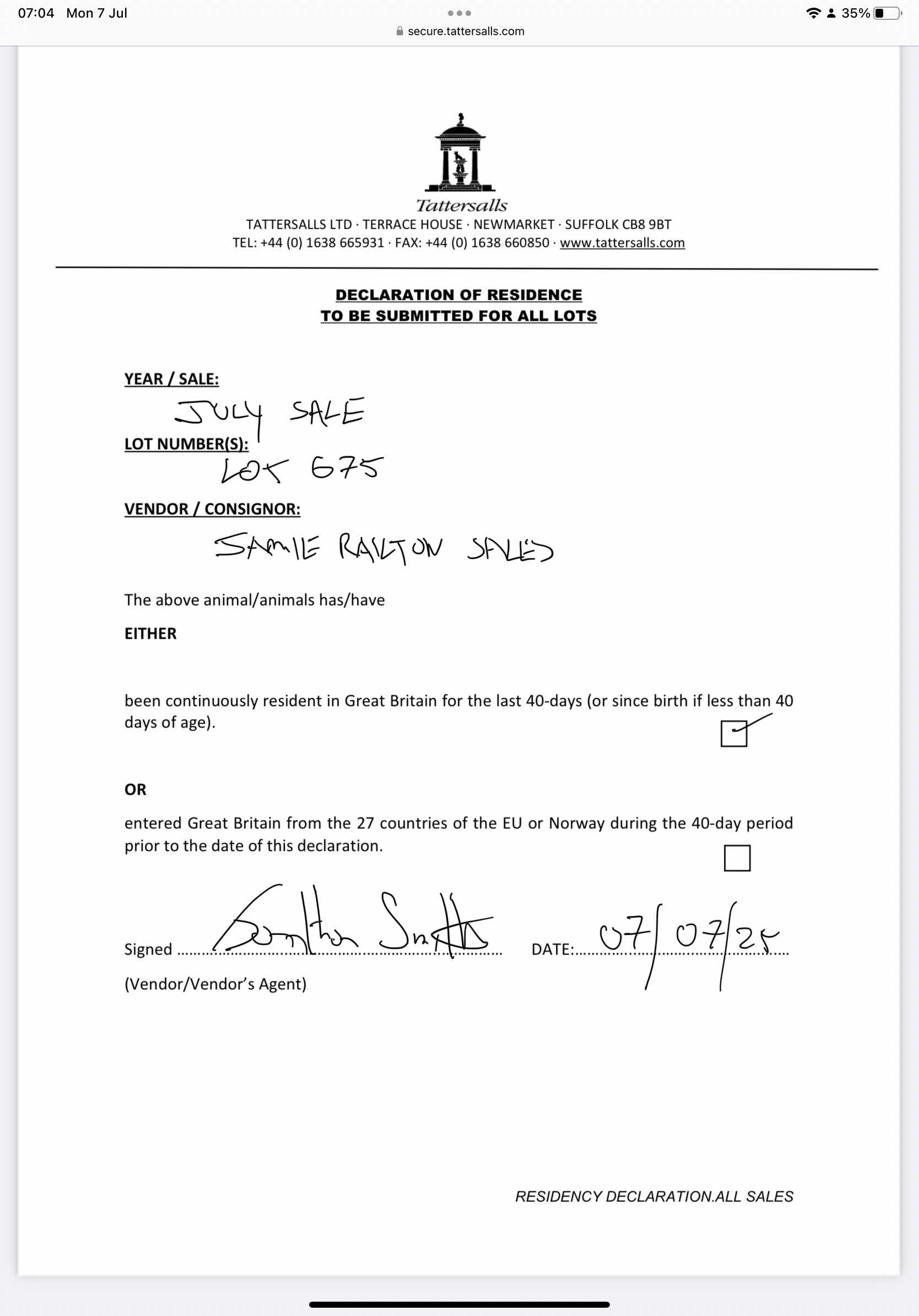Consignor: Jamie Railton (Agent)