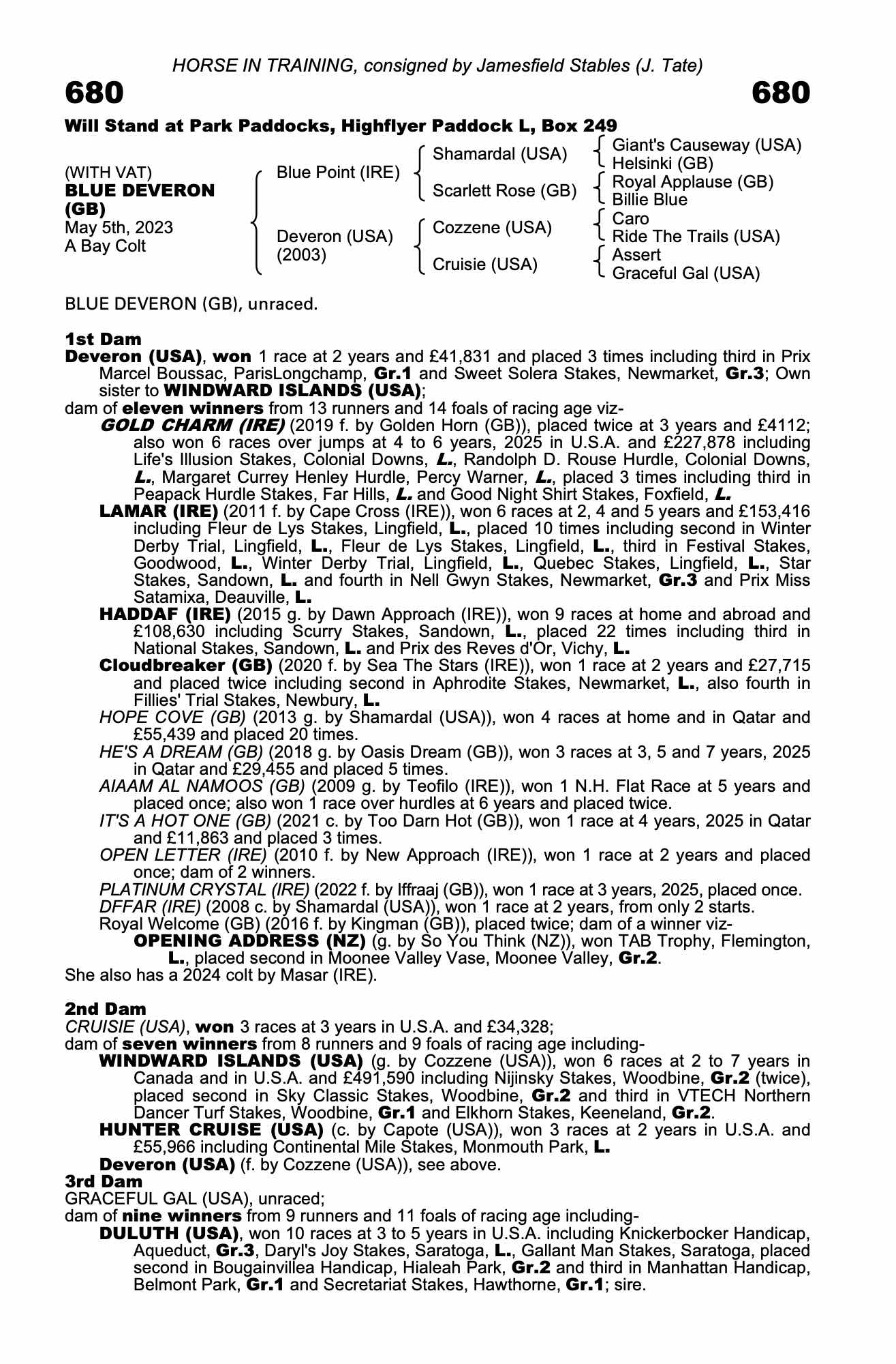 Consignor: Jamesfield Stables (J. Tate)