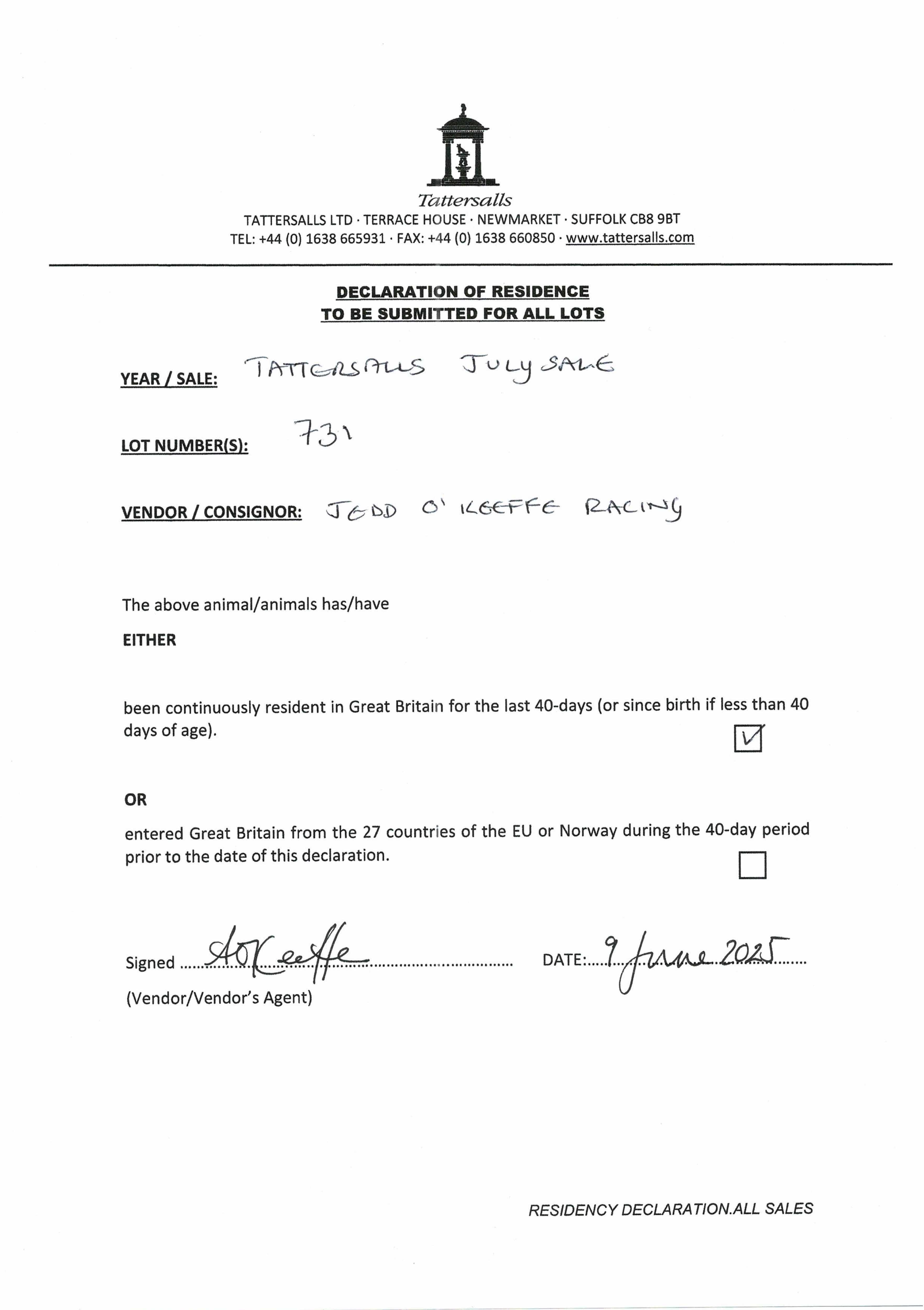 Consignor: Highbeck Stables (J. O'Keeffe)