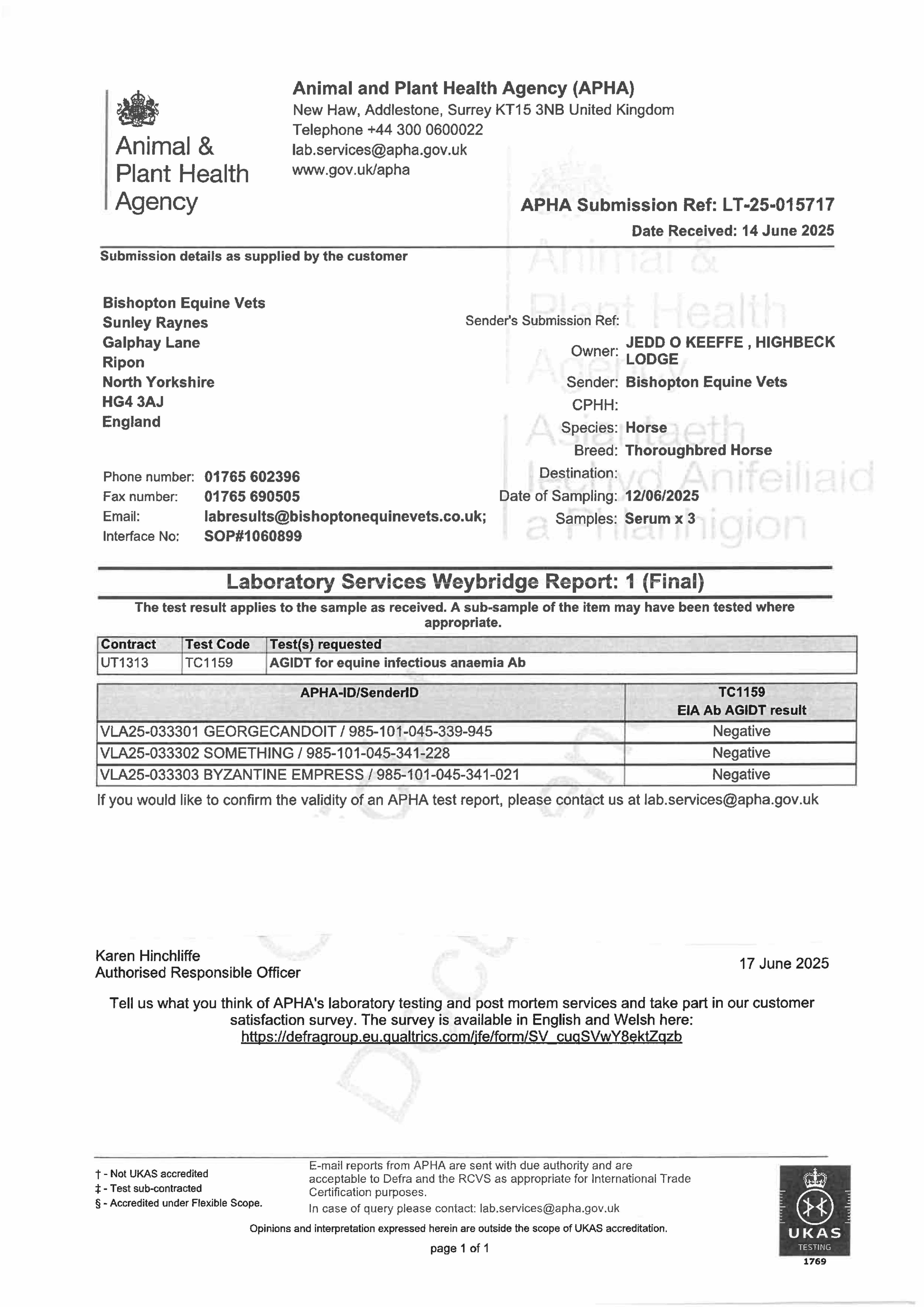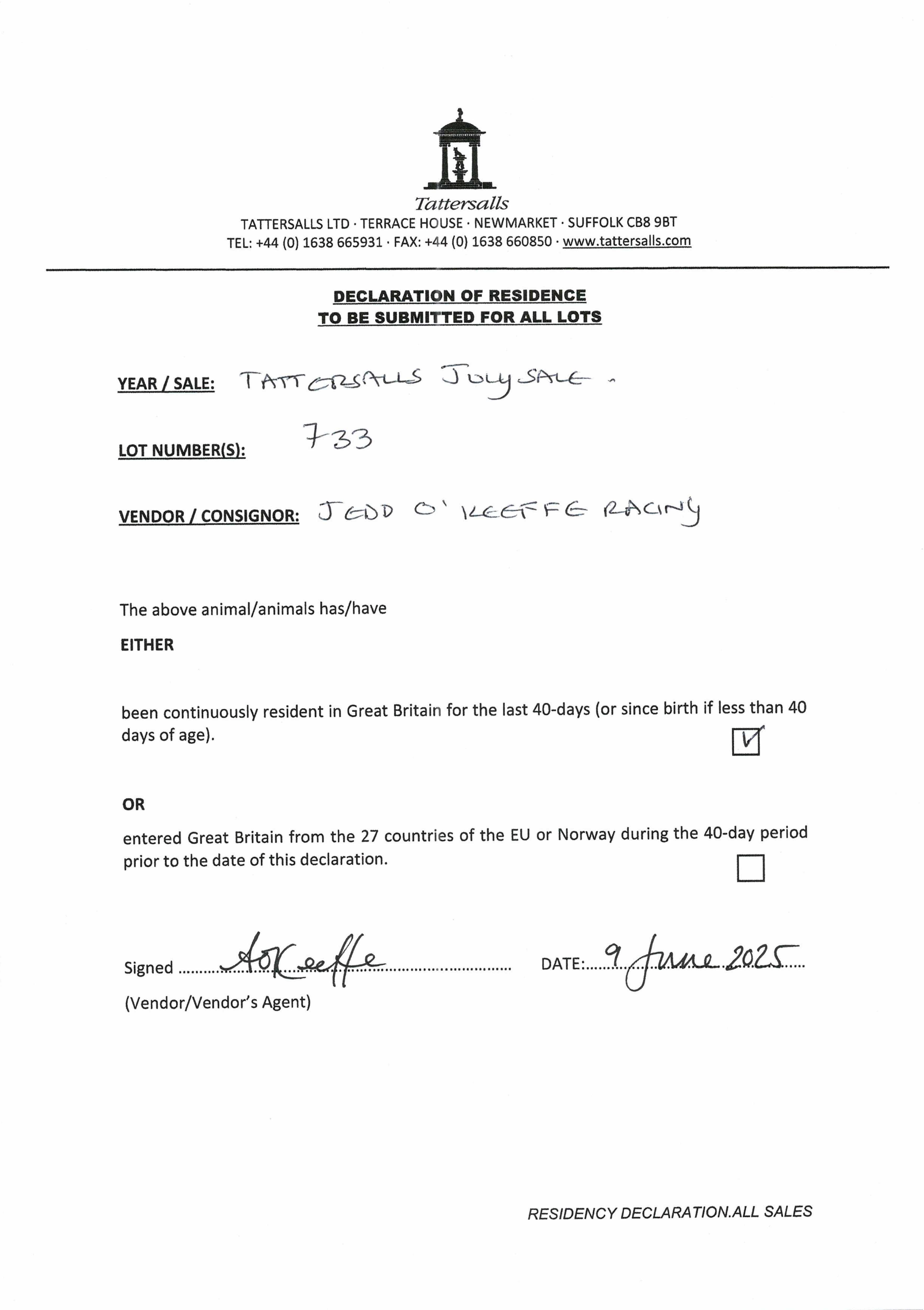 Consignor: Highbeck Stables (J. O'Keeffe)