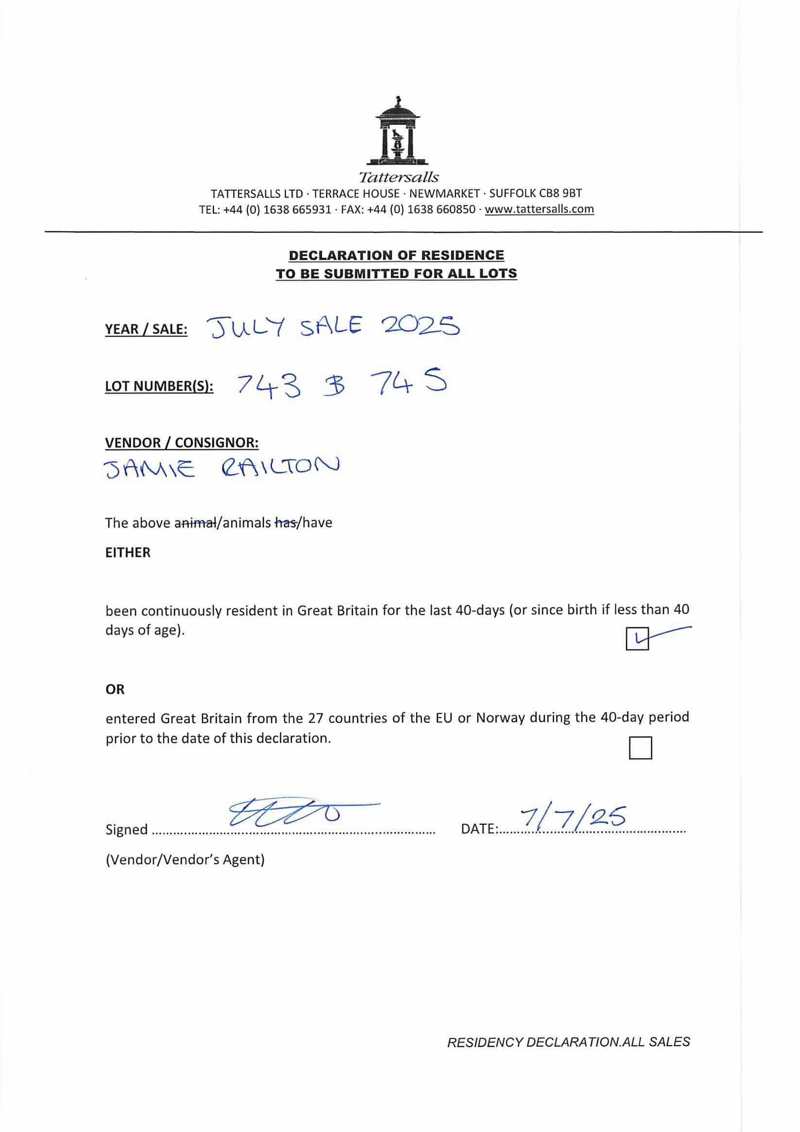 Consignor: Jamie Railton (Agent)