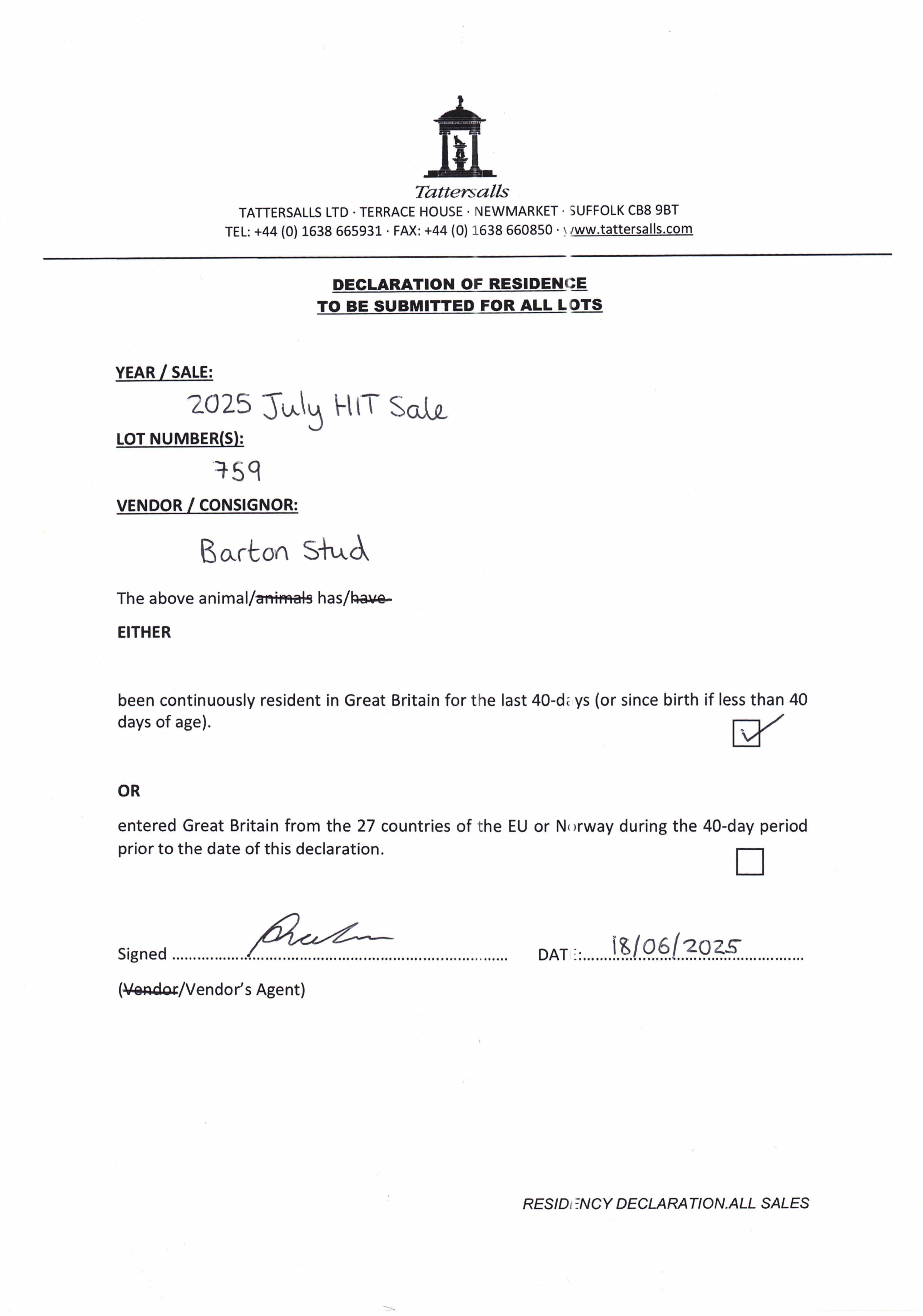 Consignor: Barton Sales